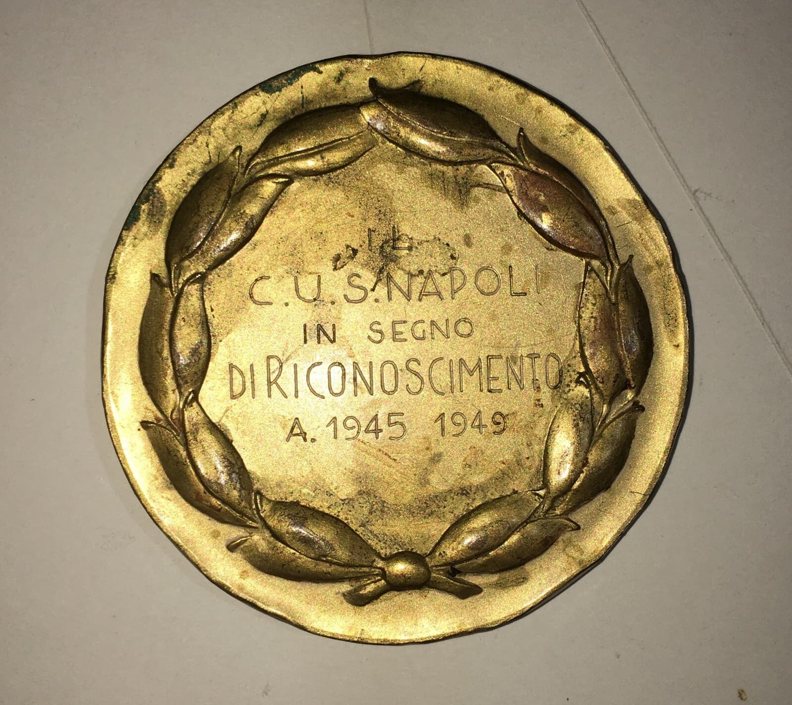 C.U.S. Napoli, Medaglia Sportiva In Metallo Dorato Con Soggetto Mitologico, 1945 1949