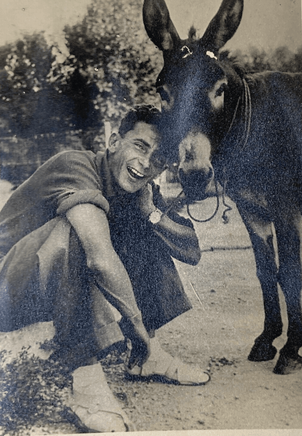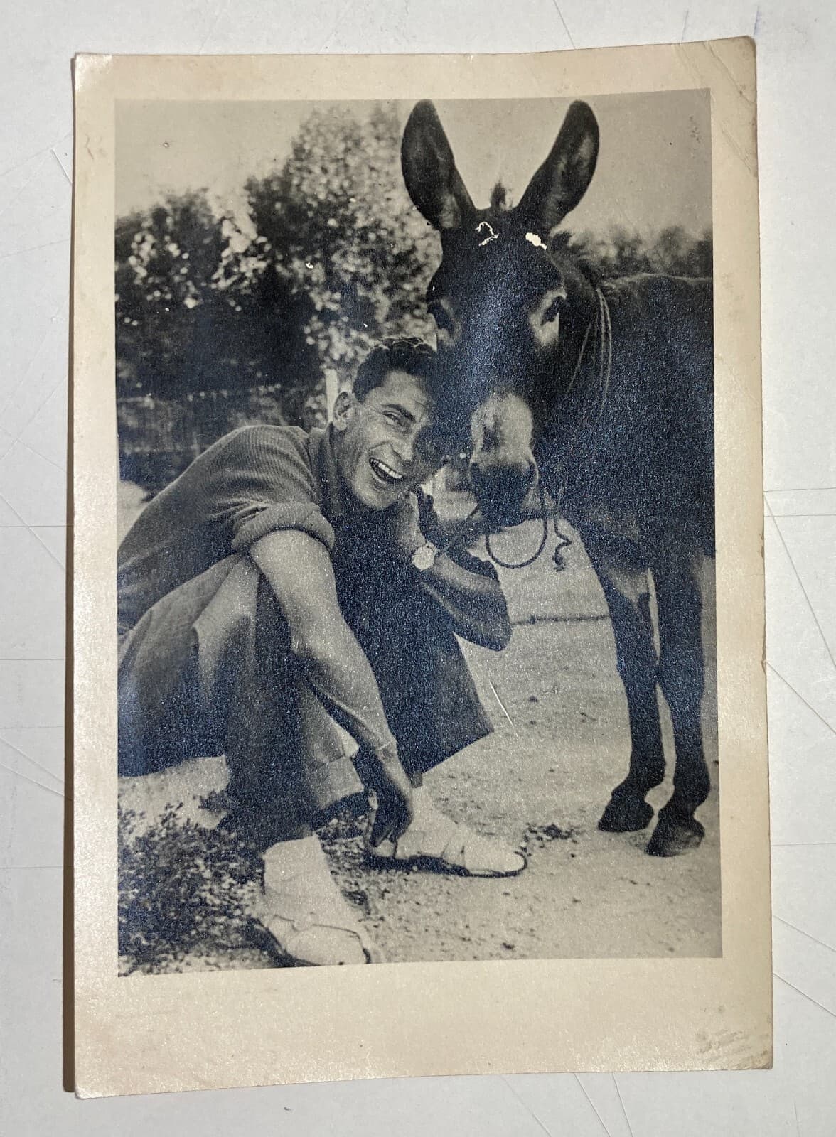Fotografia Da Collezione: Ritratto Di Uomo Con Asino, Metà '900