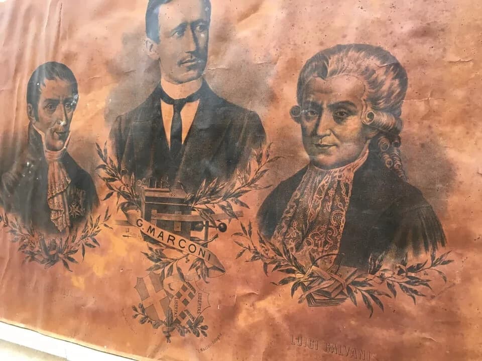Fisica, Scienziati: Marconi, Volta, Galvani. Araldica, Bologna. Lito Mazzoli, Puccioni
