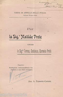 Puglia, Lecce: Giuridica, Notariato, Testamento E Psichiatria. Causa Astuto Libertini, 1901