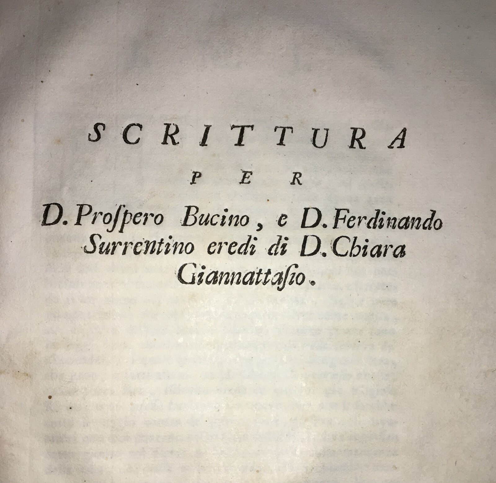 Niccolò Maria Pirelli, Scrittura Per D. Prospero Bucino E D. Ferdinando Surrentino Eredi Di D. Chiara Giannattasio
