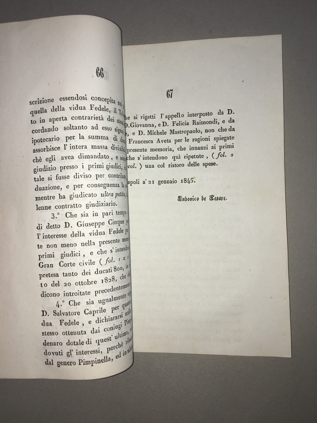 Giuridica Napoletana: Antica Allegazione Fedele, Cinque, Caprile, Raimondi, Aveta 1845