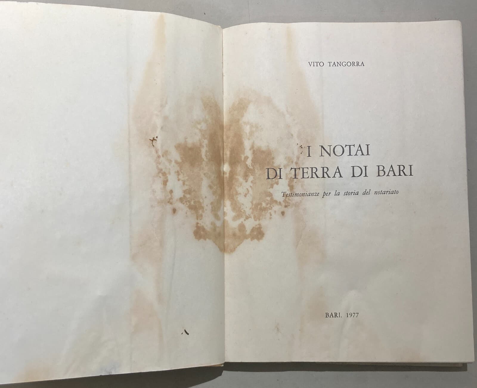 I Notai Di Terra Di Bari: Testimonianze Per La Storia Del Notariato Vito Tangorra 1977
