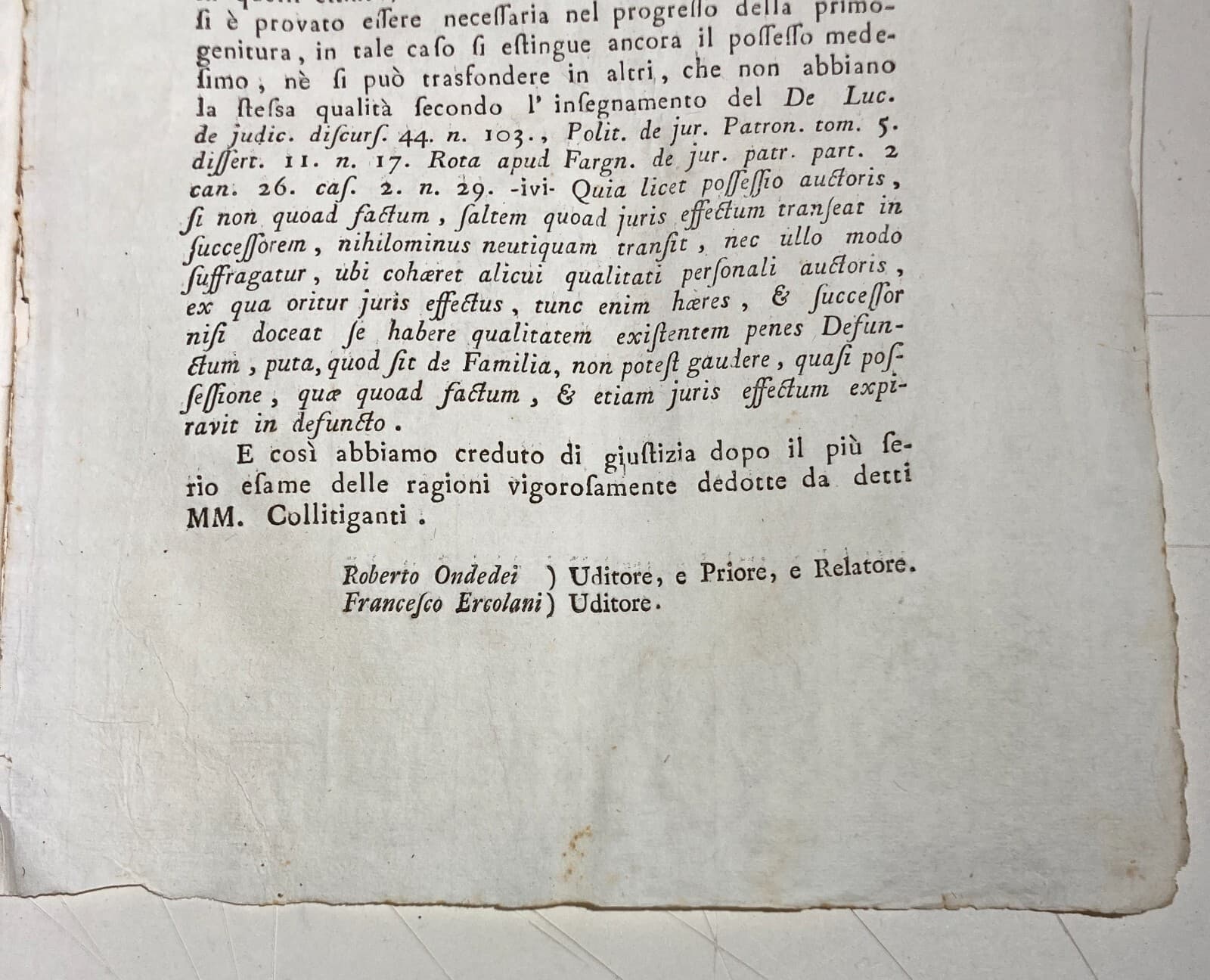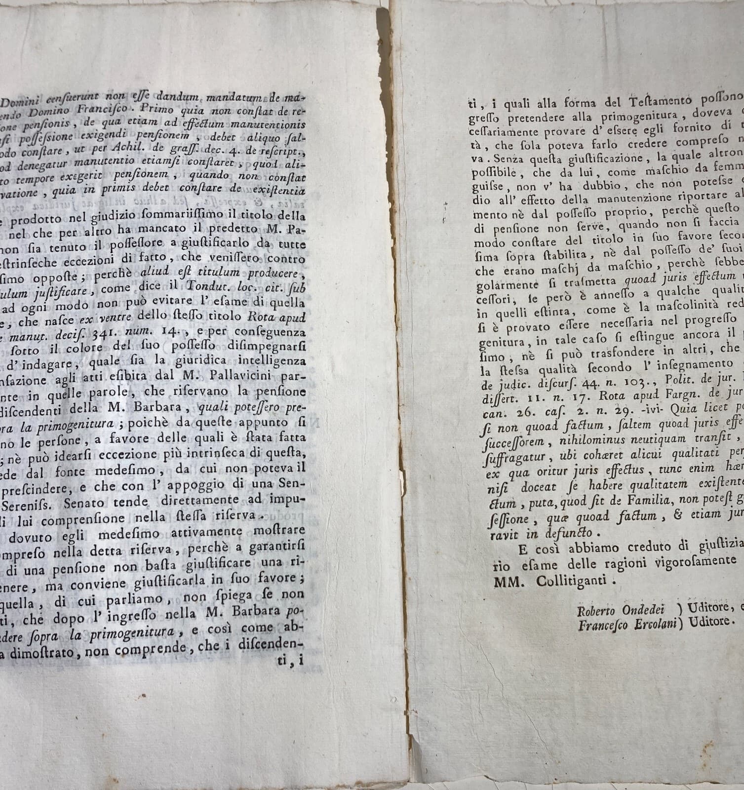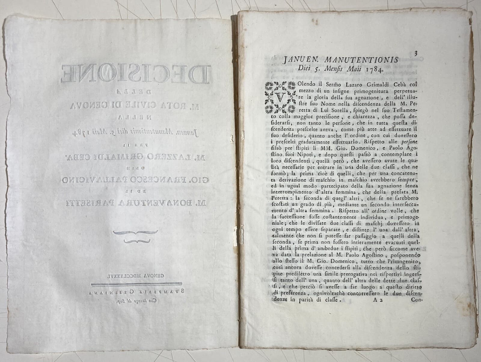 Decisione Della M. Rota Civile Di Genova (1786) Vertenza Grimaldi, Pallavicino, Parisetti
