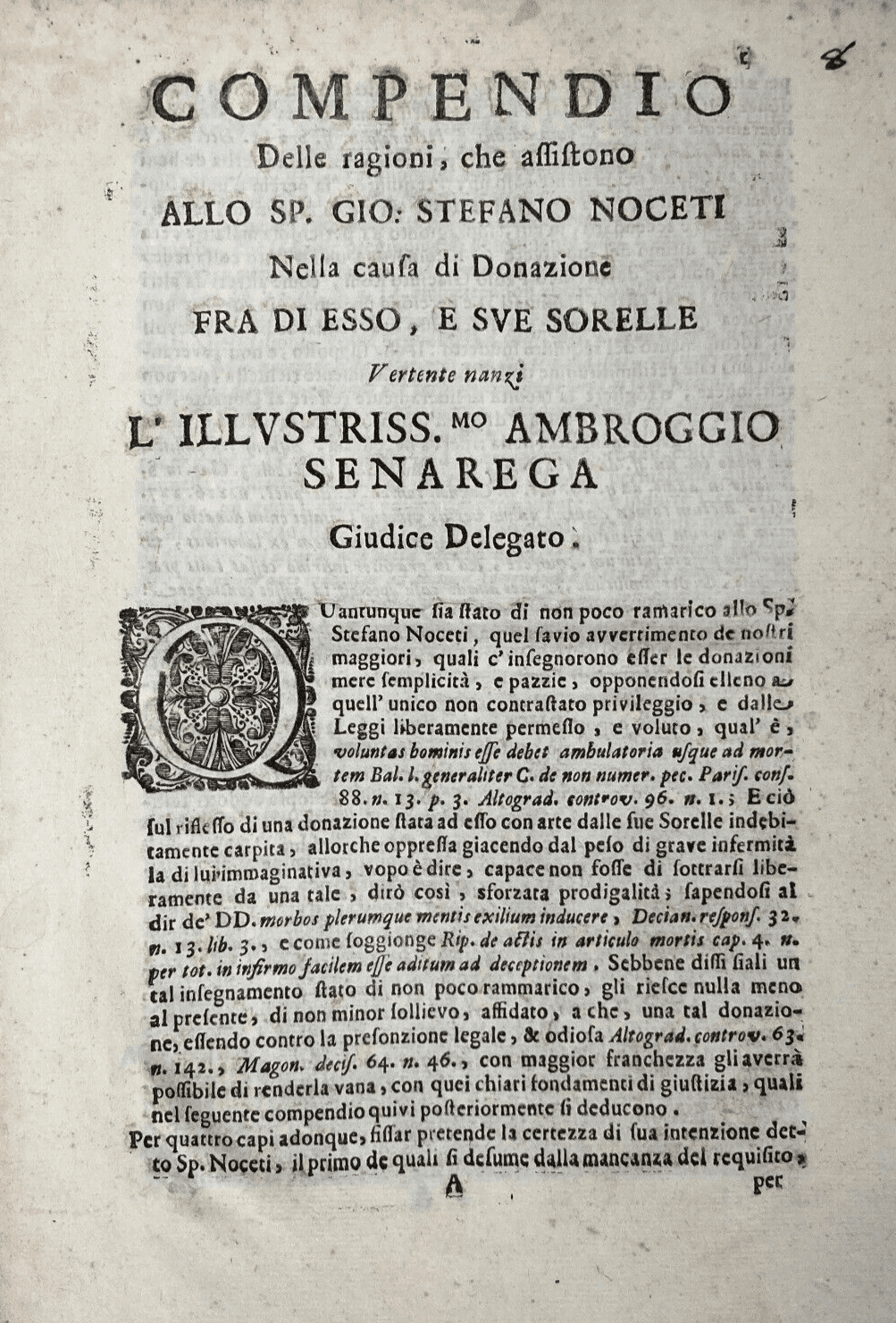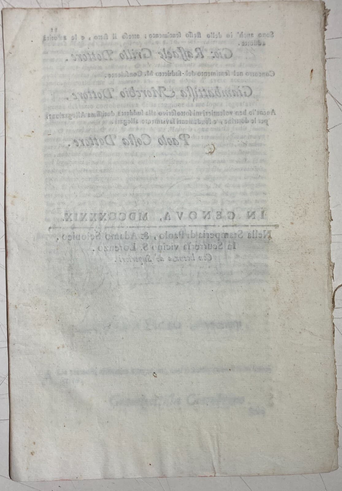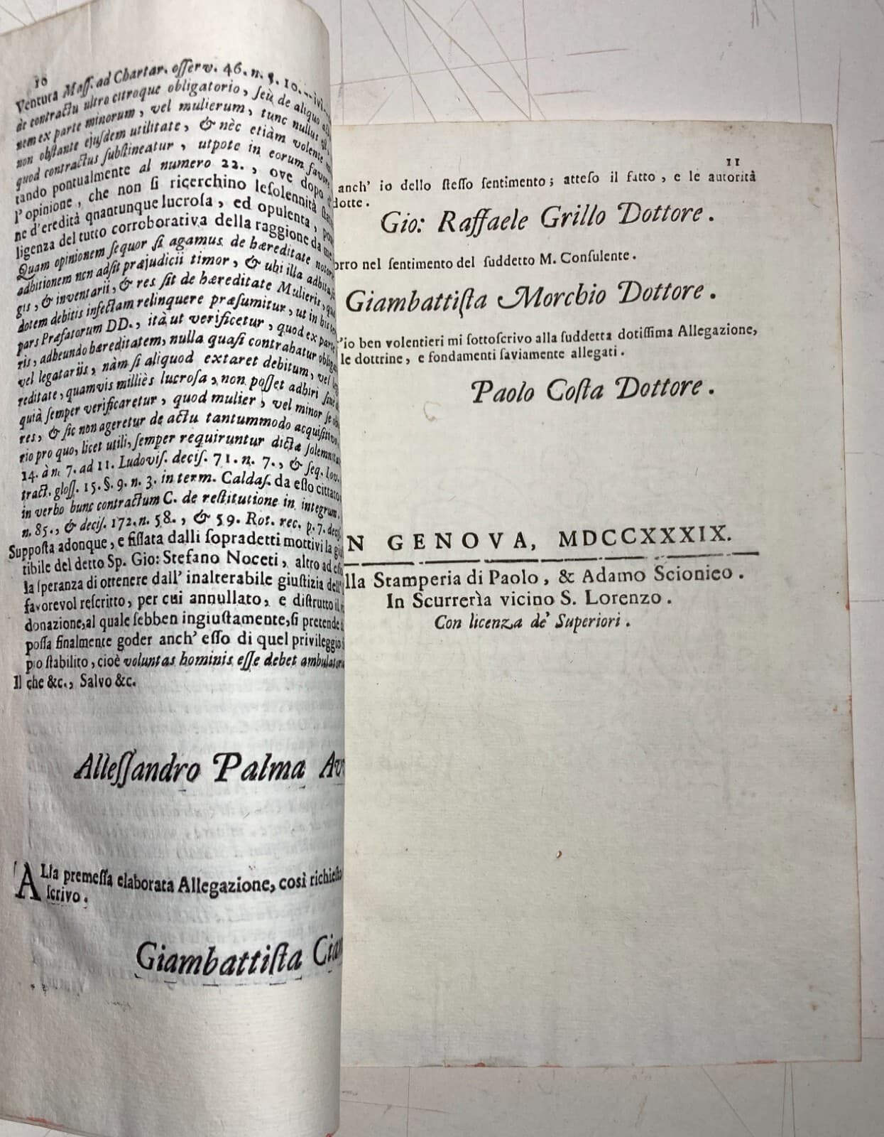 Liguria, Genova: Giuridica, Notariato, Eredità Stefano Noceti, Avvocato Palma 1739