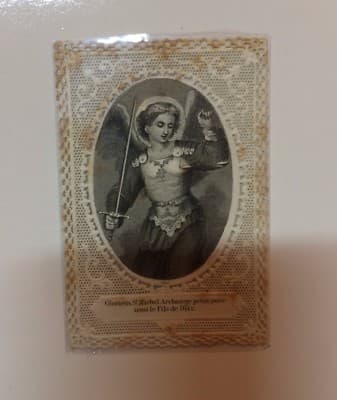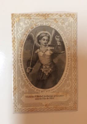 San Michele: Antico Santino Merlettato, Incisione d'Epoca, Puglia, Francia, Giustizia