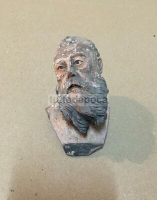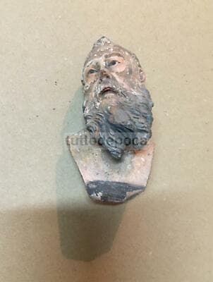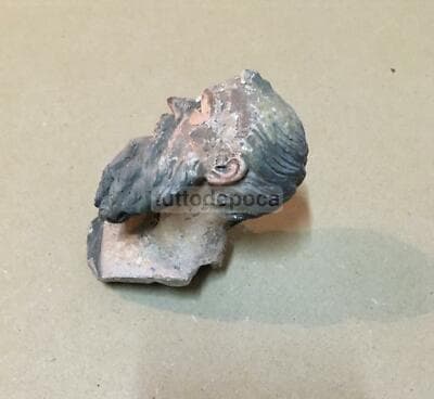 Immagine Devozionale Antica, Testina In Terracotta, Presepio Napoletano, XIX Secolo