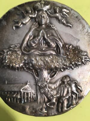 Napoli Madonna Di Pompei, Spilla d'Epoca Con Stampa Cromolitografica