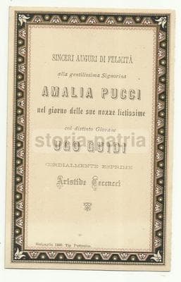 Marche, Senigallia, Aristide Ceccacci, Nozze Pucci Guidi, Antico Biglietto d'Auguri