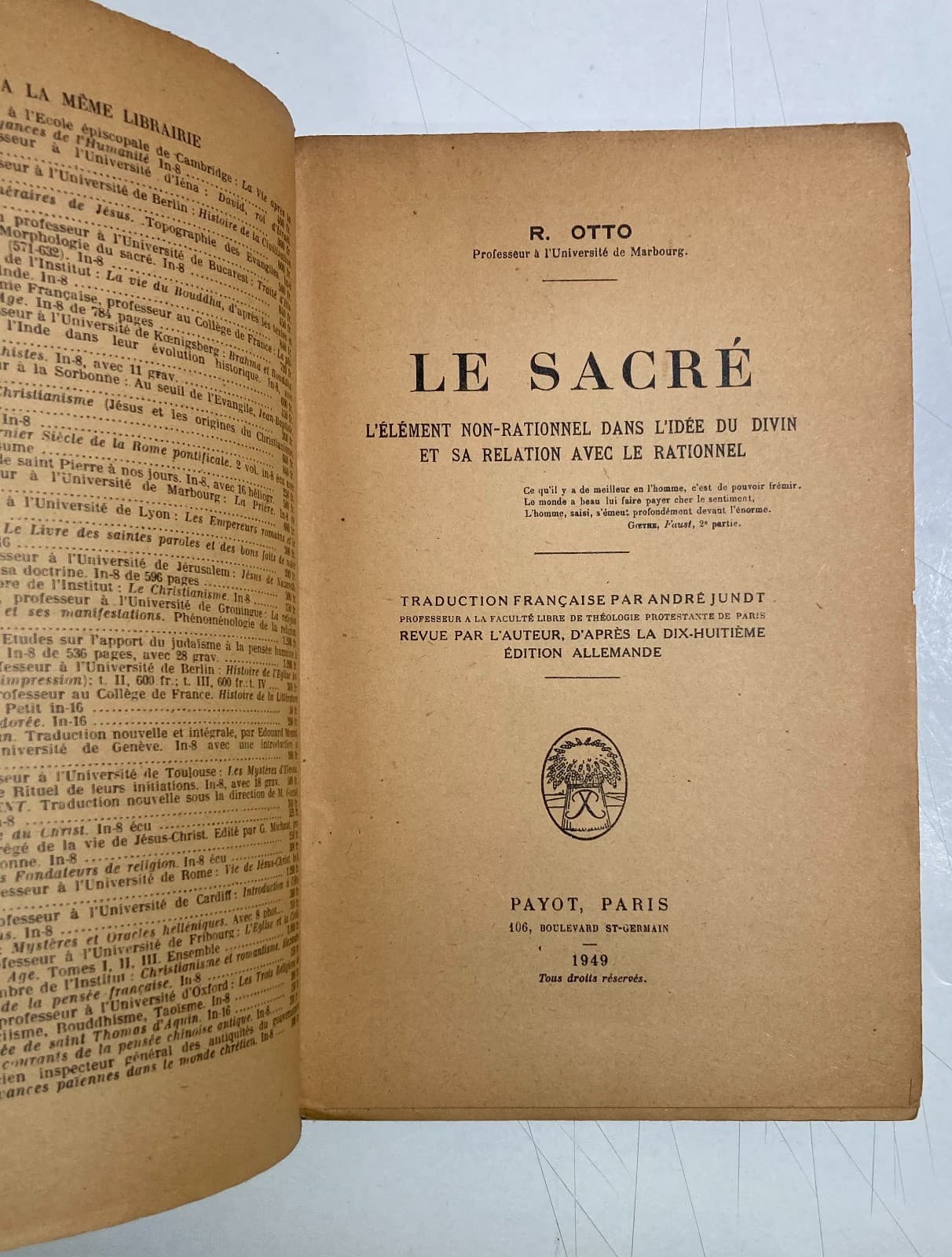 Teologia, Esoterismo, Sacro Razionale E Irrazionale Rudolf Otto 1949