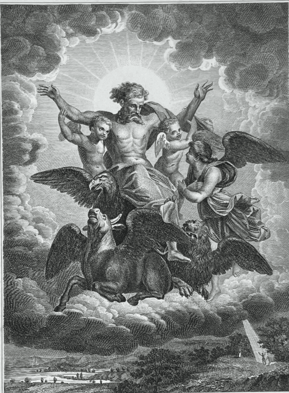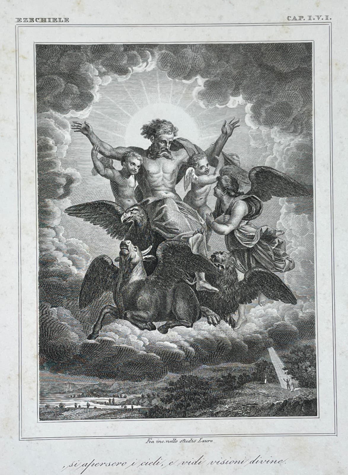 Antica Stampa Biblica Ezechiele: Visioni Divine Artista Incisore Fea Lauro XIX Secolo