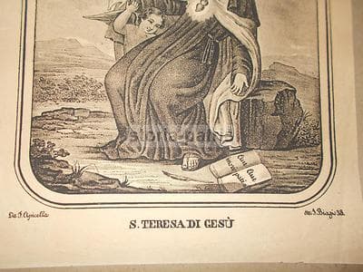 Santa Teresa Di Gesù, Antica Stampa Popolare Devozionale, Litografia Napoletana Del XIX Secolo
