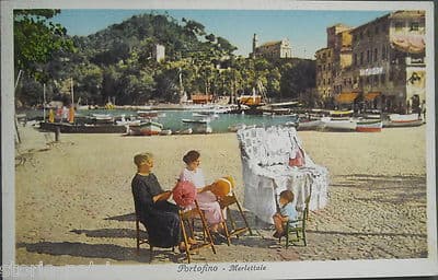 Portofino, Liguria: Veduta Panoramica Con Ricamatrici E Merlettaie (a Colori)