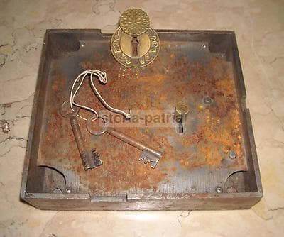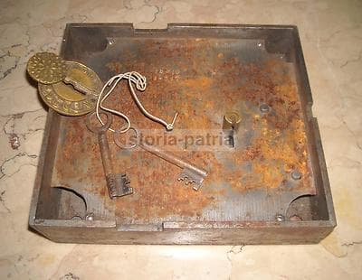 Antica Serratura In Metallo Inciso Con Chiavi, Metà XIX Secolo