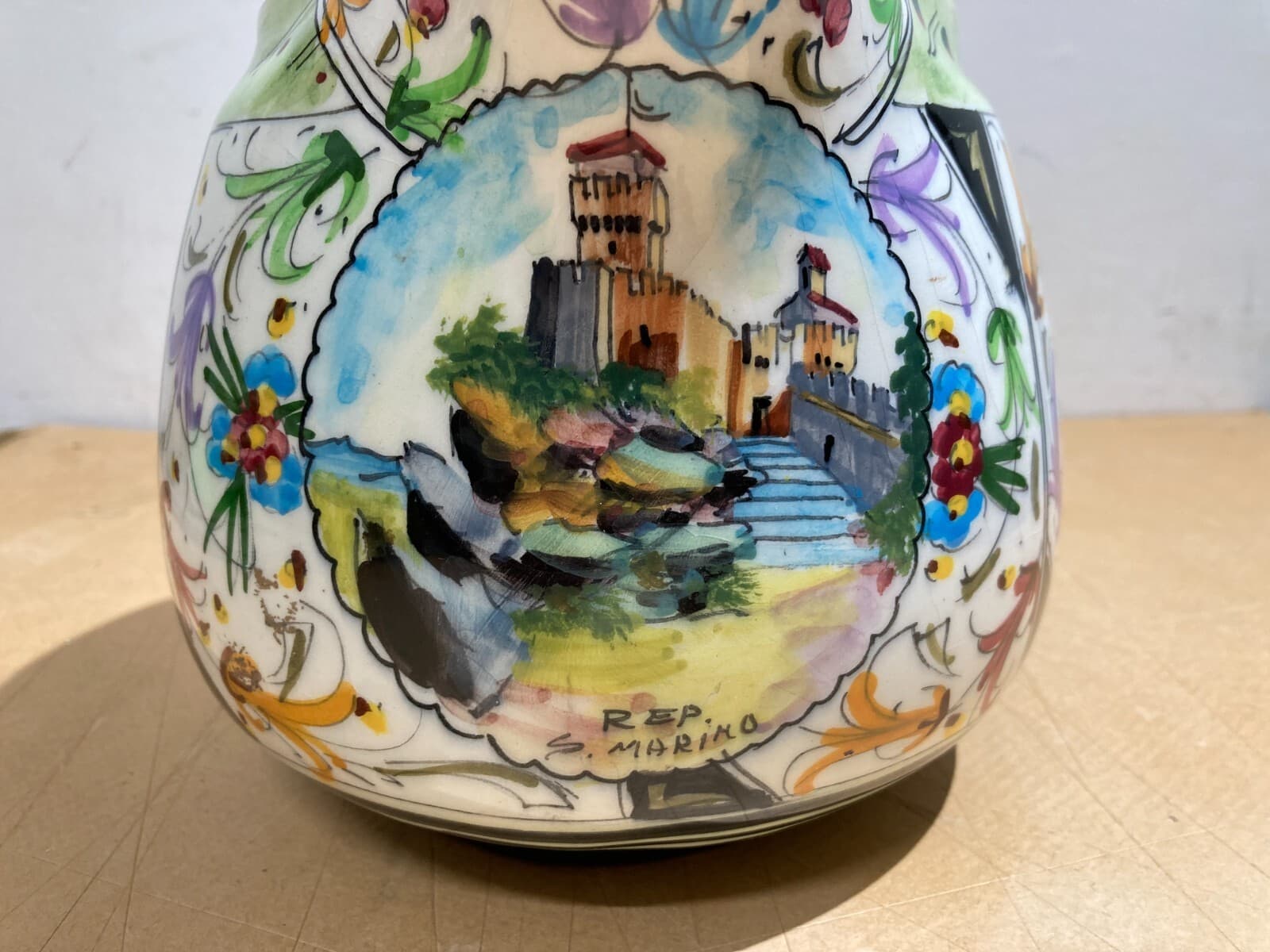 Soprammobile Decorativo In Ceramica Con Decori Floreali E Veduta Di San Marino