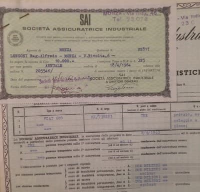 Assicurazione Auto d'Epoca Fiat 750, Targa MI 738283, Monza 1965