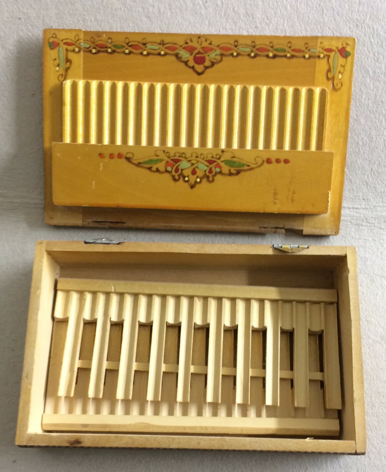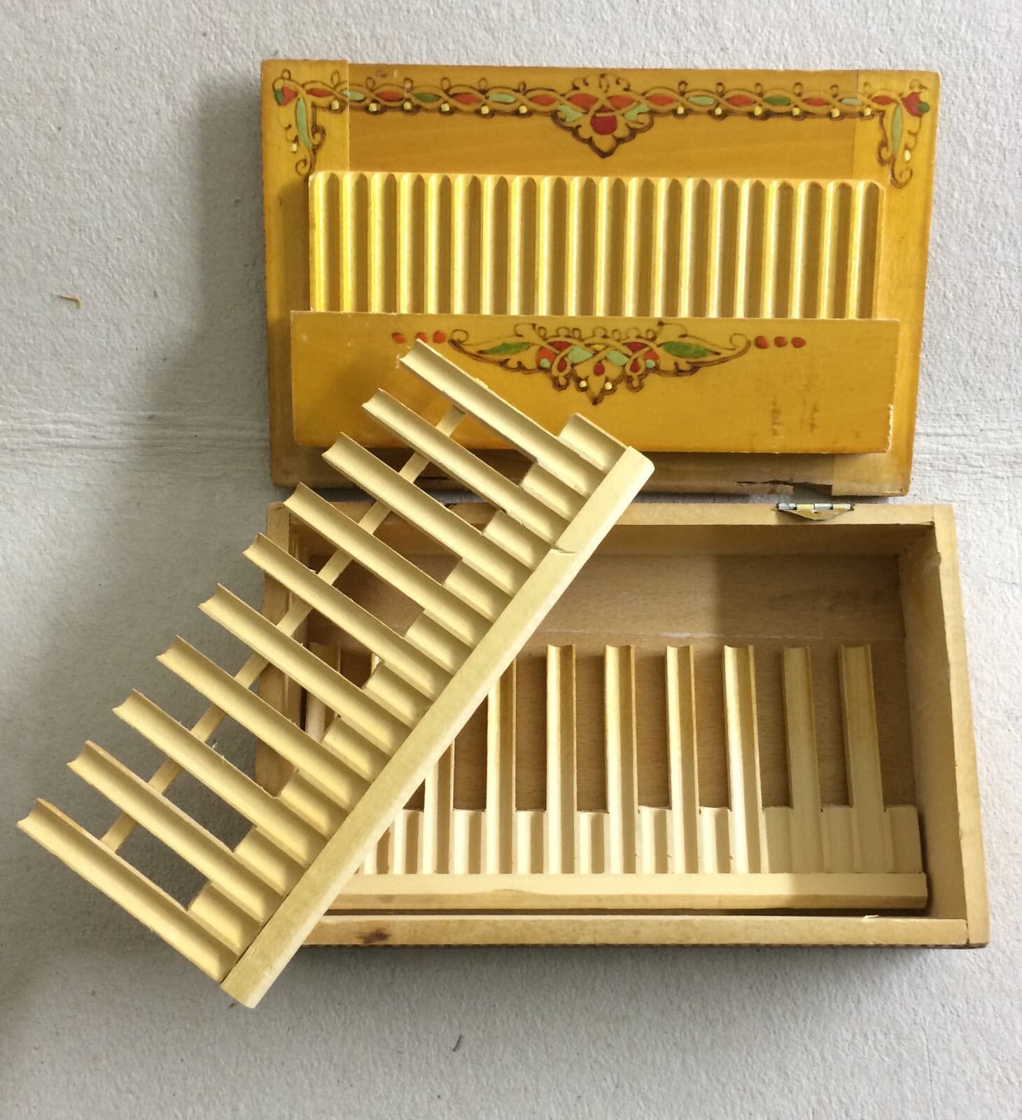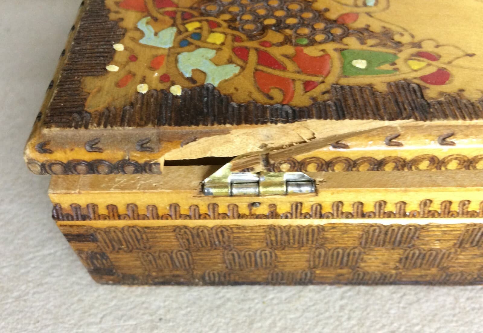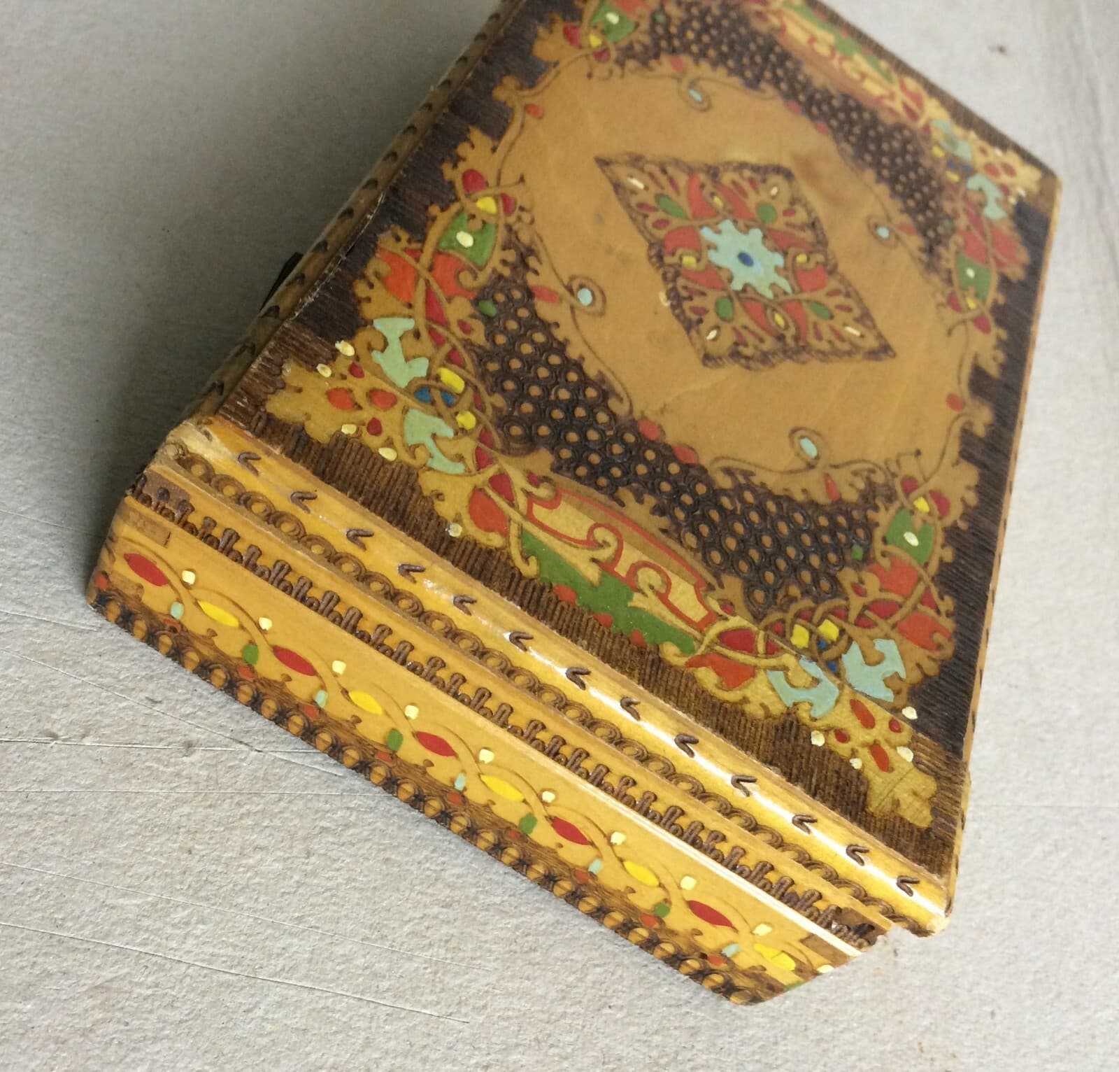 Scatola Porta Sigarette In Legno Con Motivi Policromi Pirografati