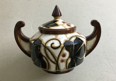 Zuccheriera In Ceramica Con Decori Floreali Policromi, Albissola, Anni '20