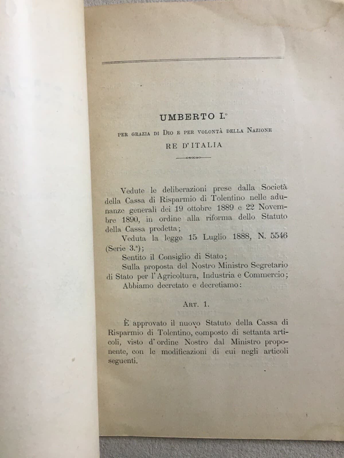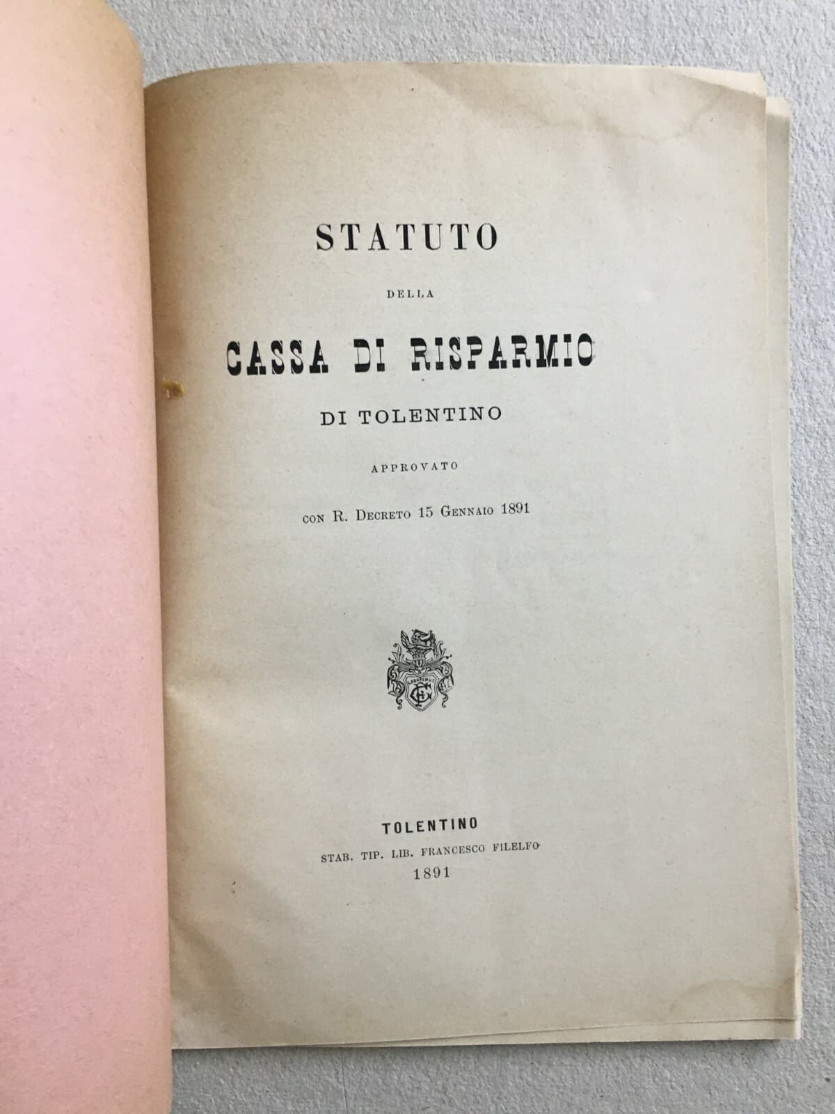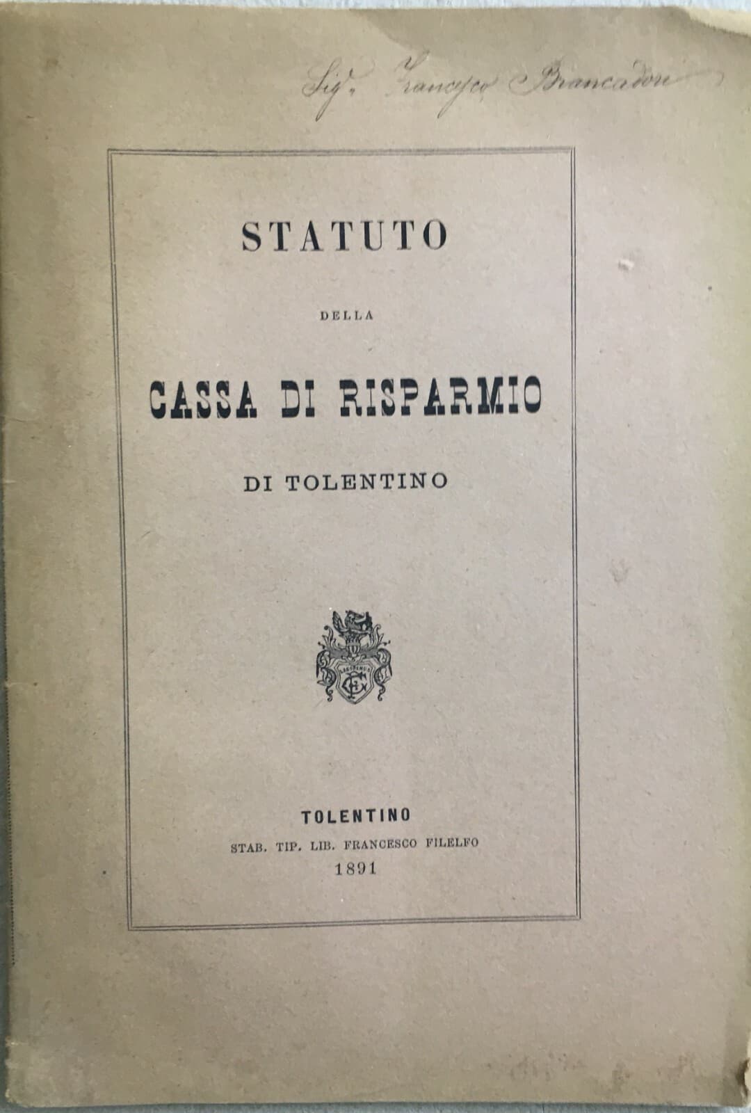 Statuto Della Cassa Di Risparmio Di Tolentino, 1891