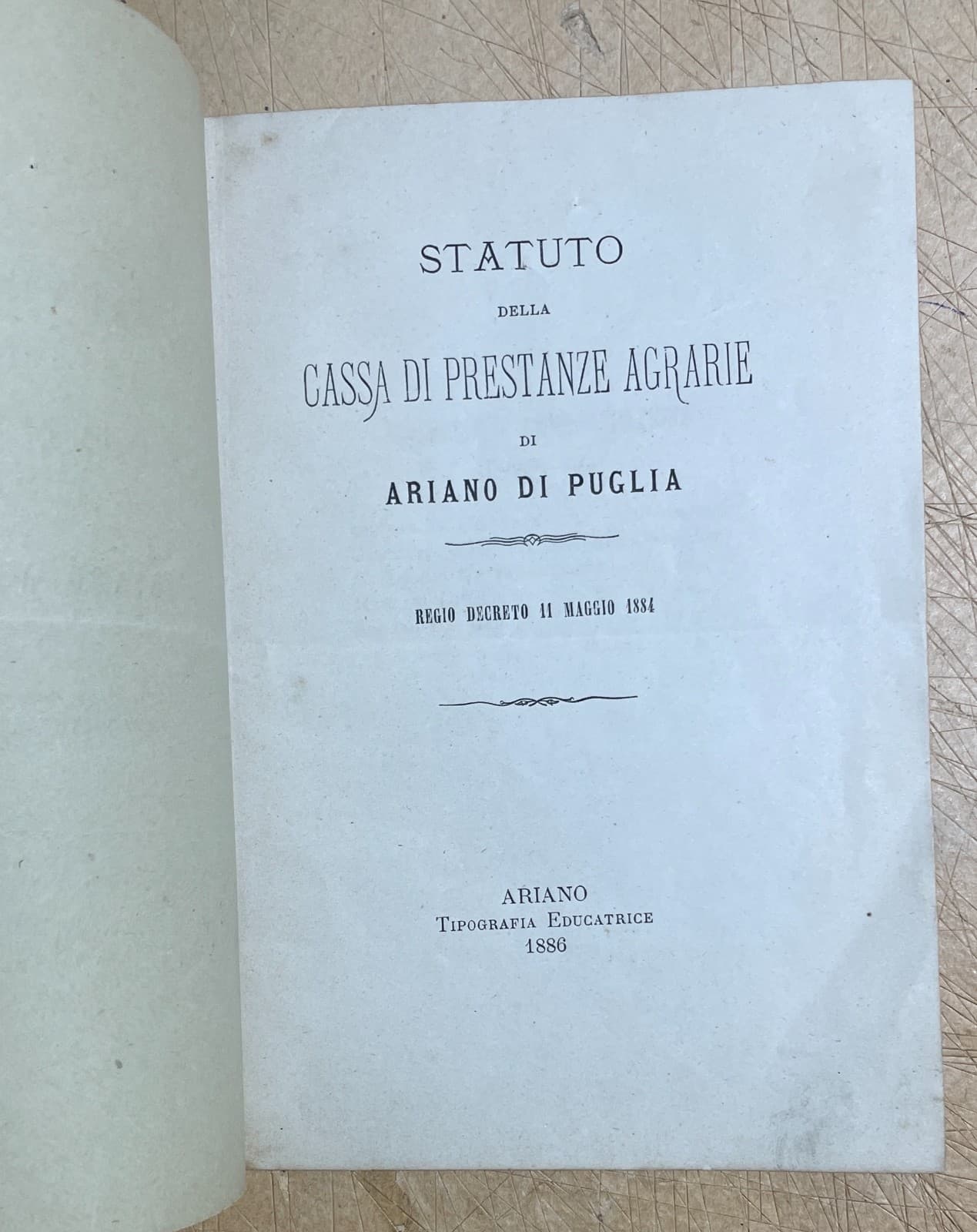 Statuto Della Cassa Di Prestanze Agrarie Di Ariano Di Puglia, 1886