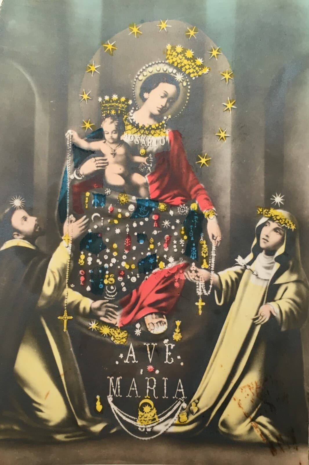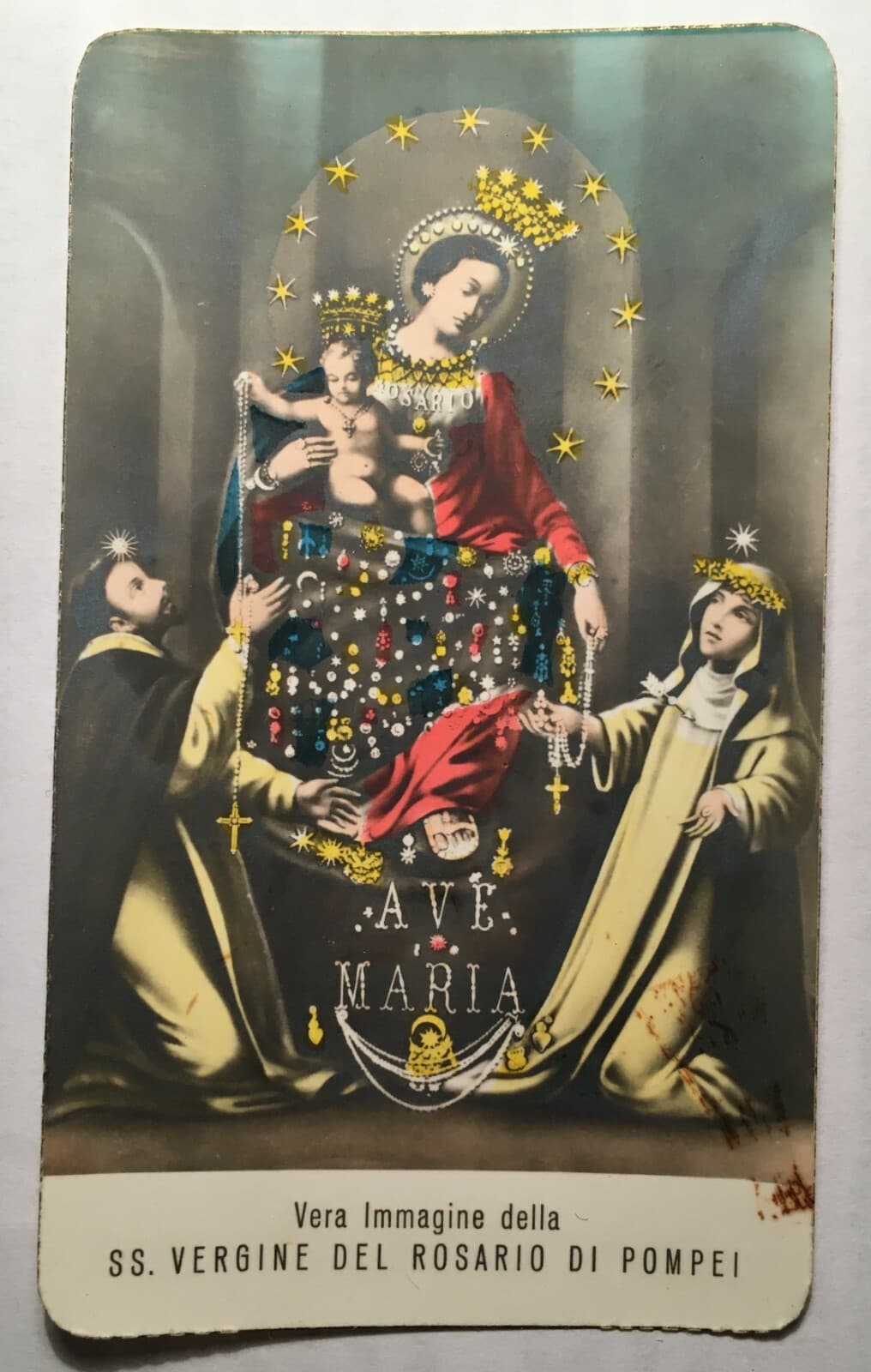 Napoli, Pompei, Madonna Del Rosario, Inusuale Santino Fotografico Colorato A Mano