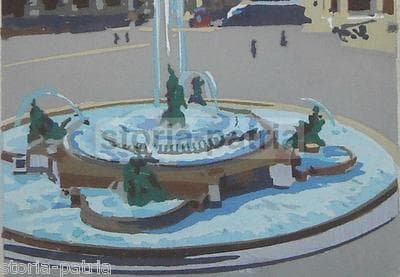Architettura, Prospettiva Artistica, Veduta Di Palazzi Con Fontana Monumentale, Pochoir