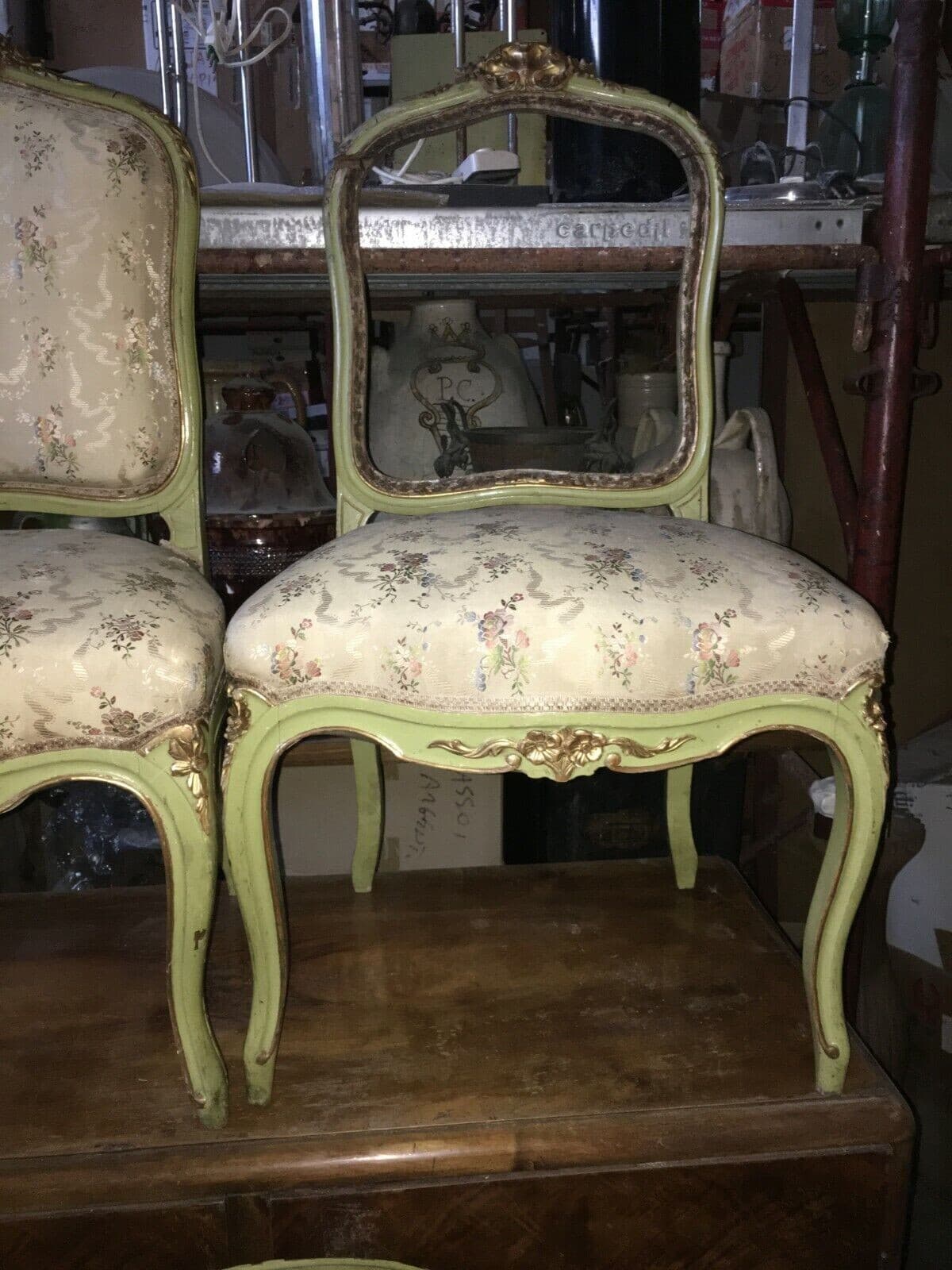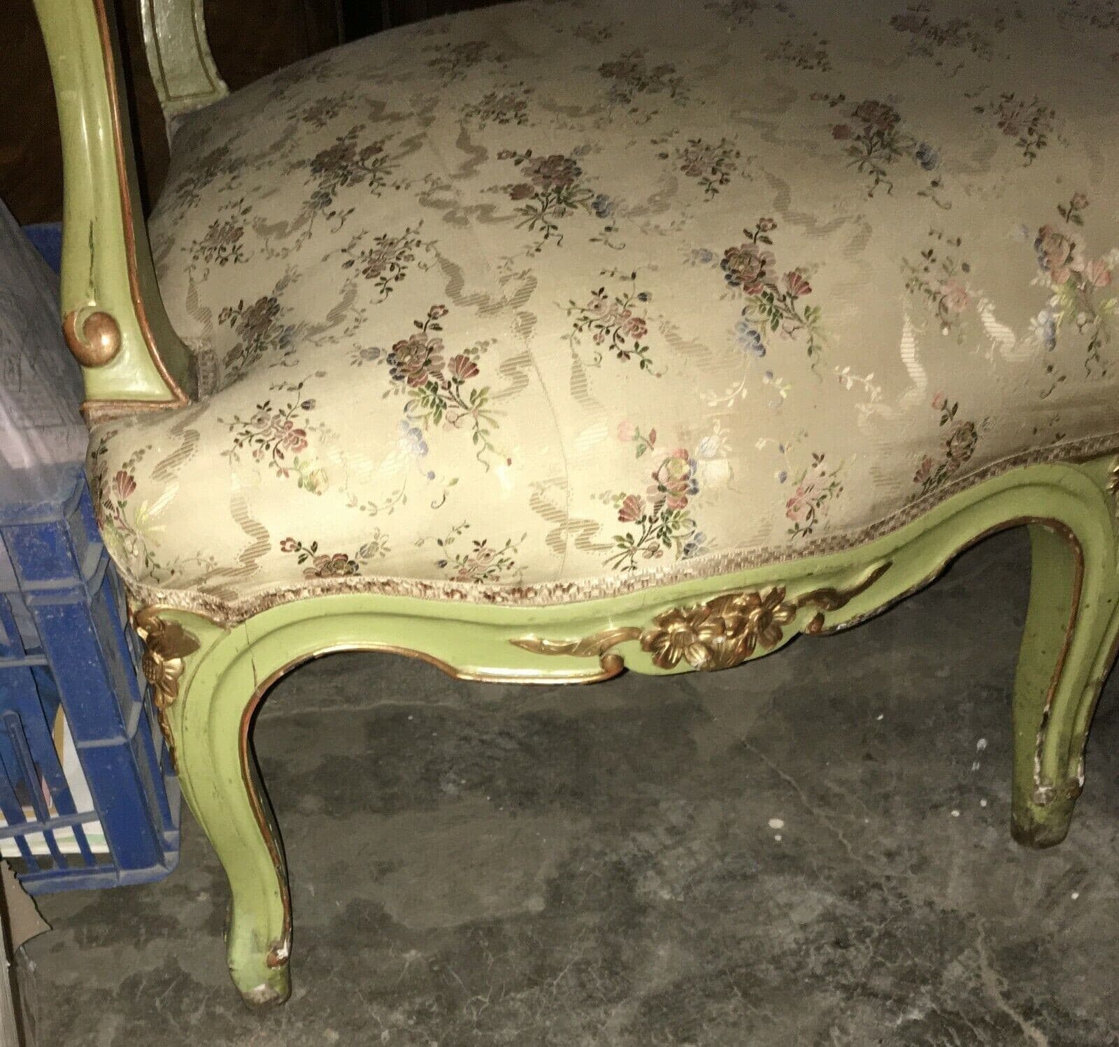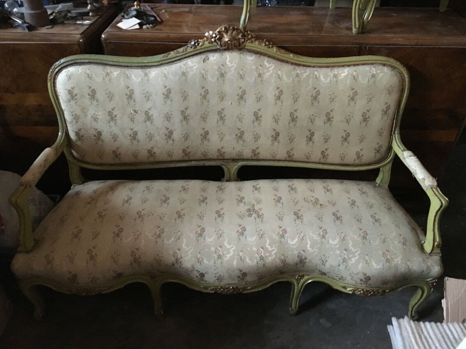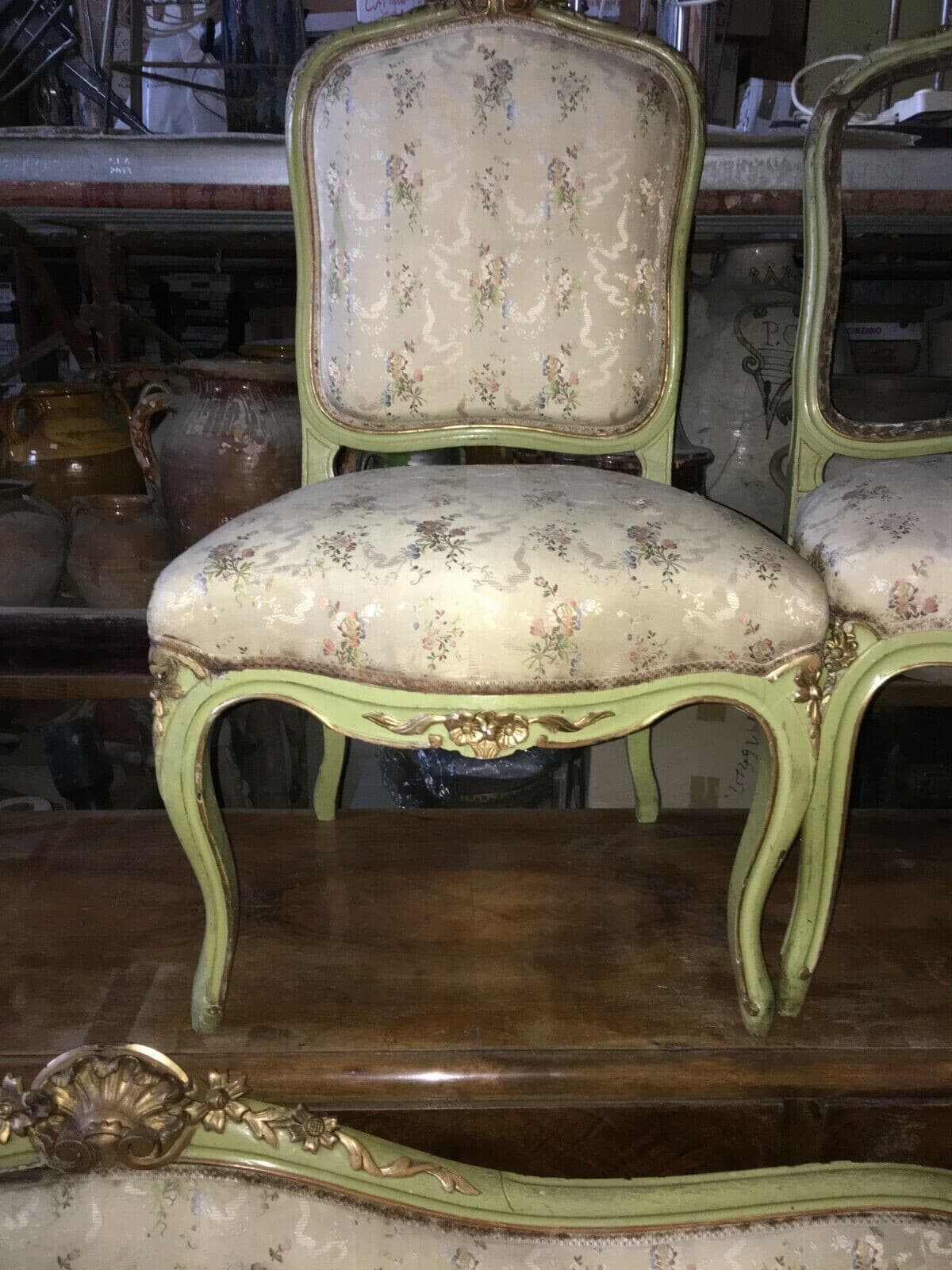 Decorativo Antico Salotto: Divano E Due Sedie In Legno Laccato E Dorato Del XIX Secolo