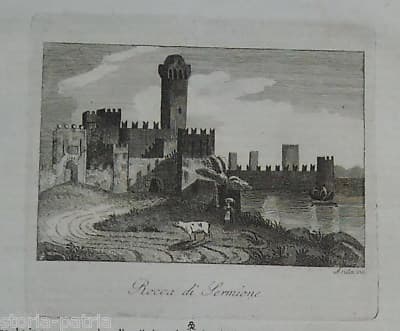 Rocca Di Sirmione, Antica Veduta Dell'Ottocento. Incisione Di Aruta