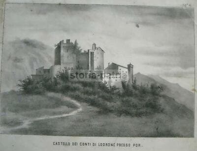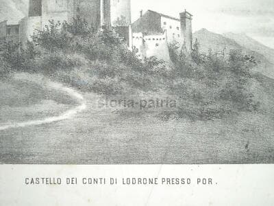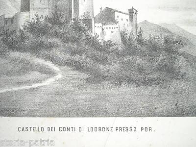 Trentino, Trento, Contea Di Lodrone: Castello Por, Antica Veduta. Litografia Dell'800