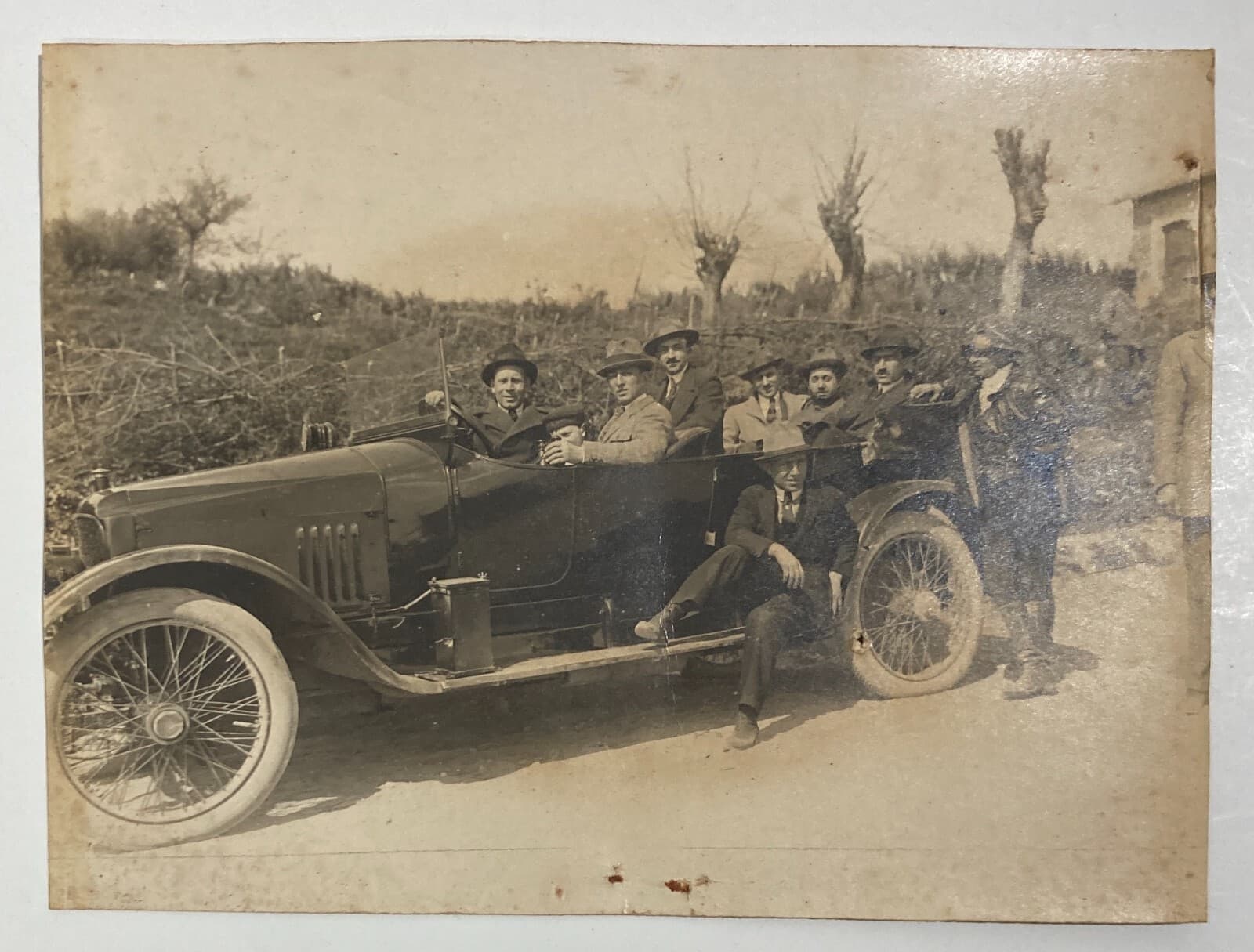 Automobilismo, Auto d'Epoca: Antica Foto Storica, Animata Veduta Con Automobile