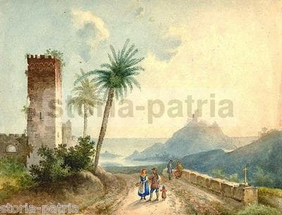 Fine XIX Secolo, Paesaggio Costiero Con Torri E Figure, Acquerello Su Carta