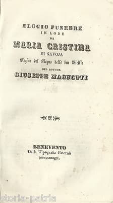 Elogio Funebre In Lode Di Maria Cristina Di Savoja, Regina Del Regno Delle Due Sicilie Benevento, 1836