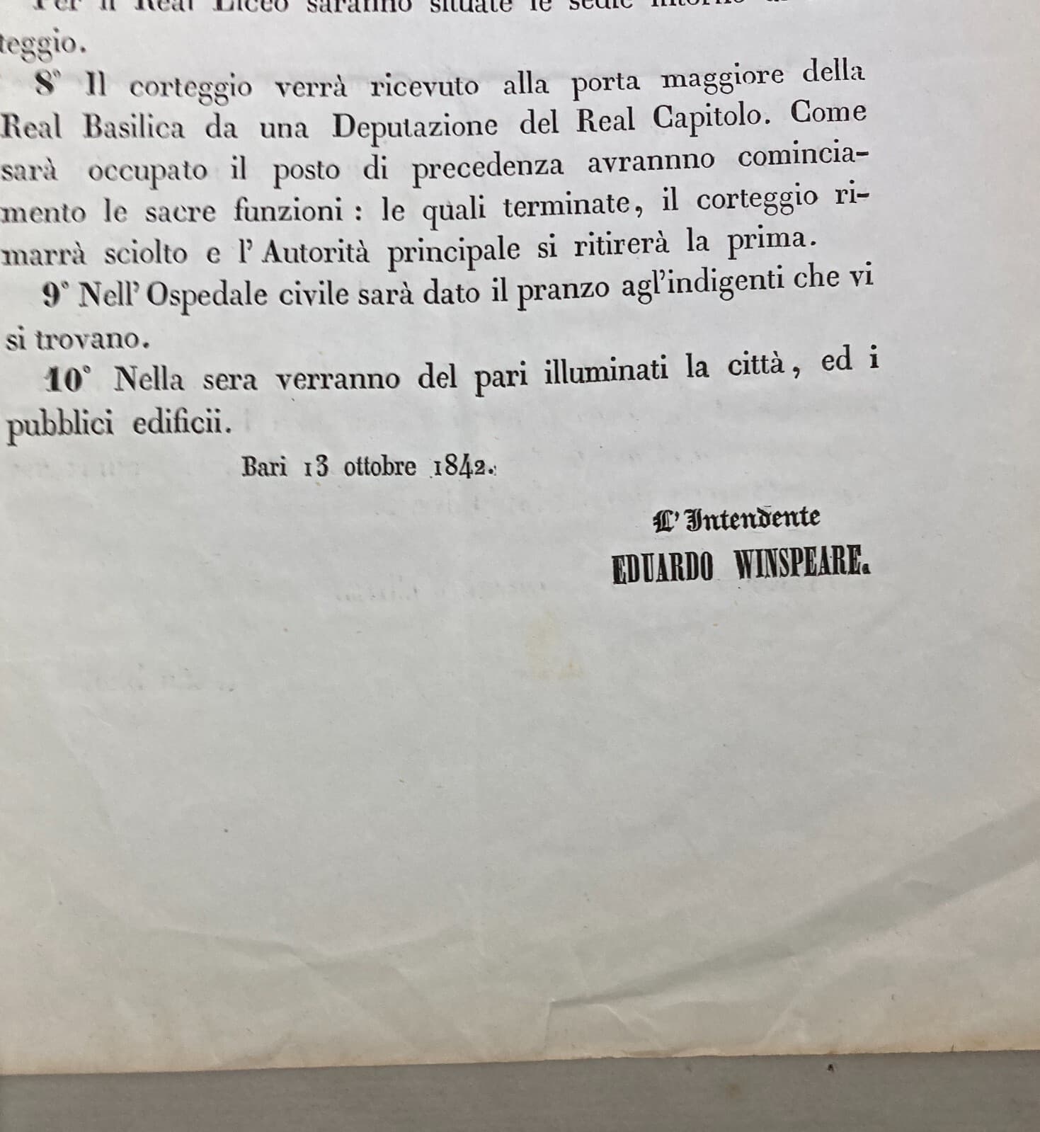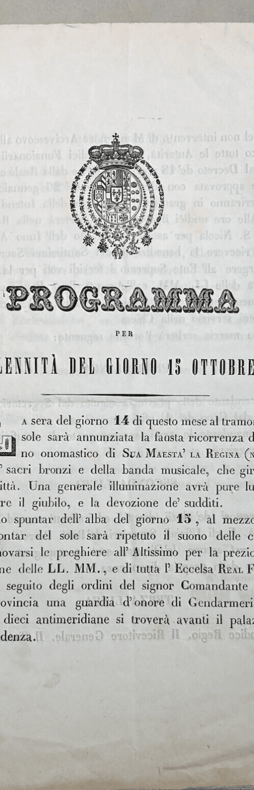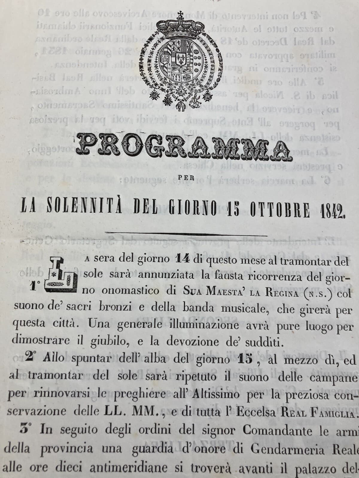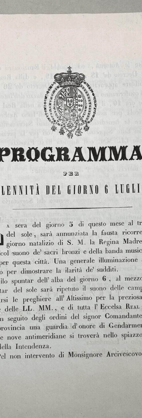 Puglia Bari Borboni Festeggiamenti Per Il Compleanno Della Regina 1843