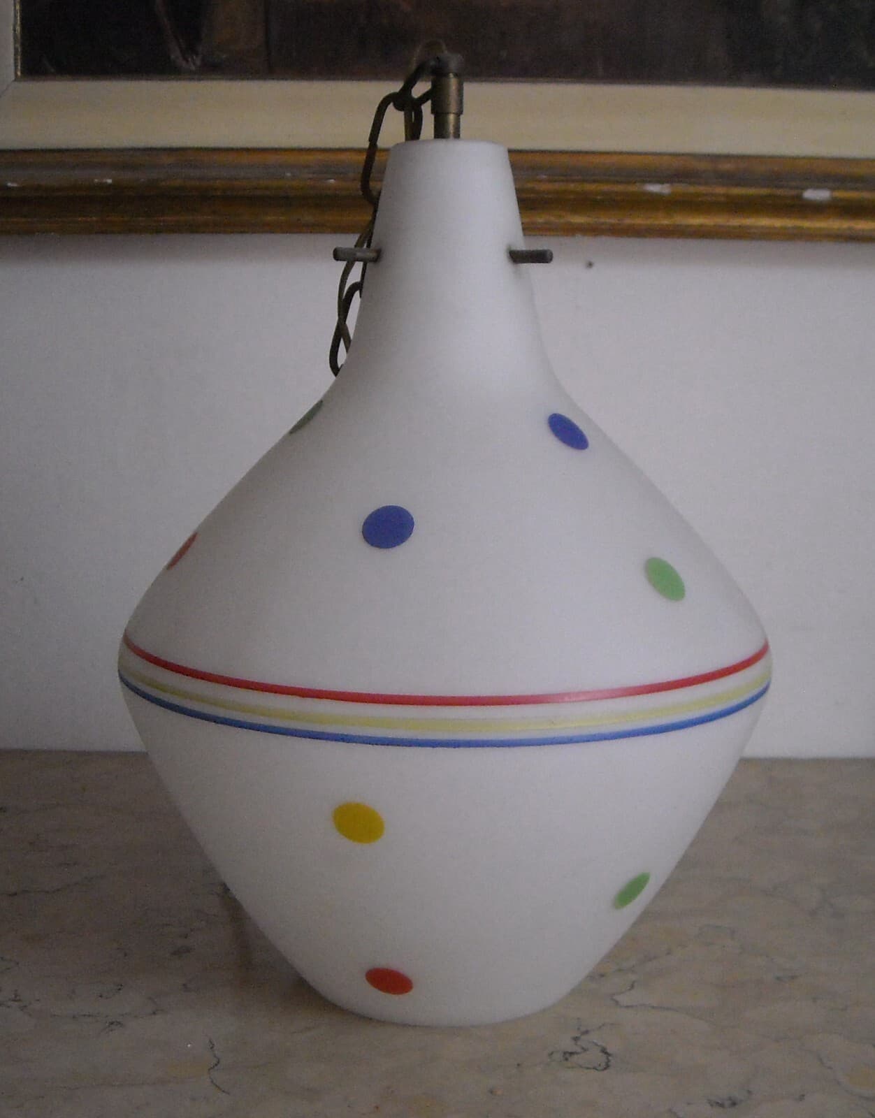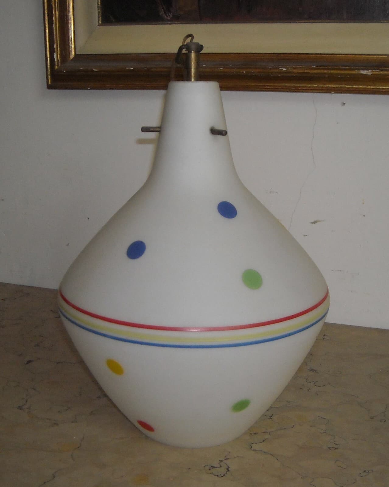 Lampada A Sospensione In Vetro Opalescente, Design Anni '50 '60