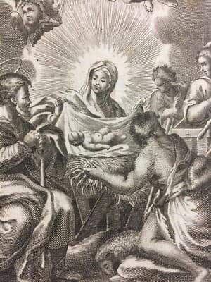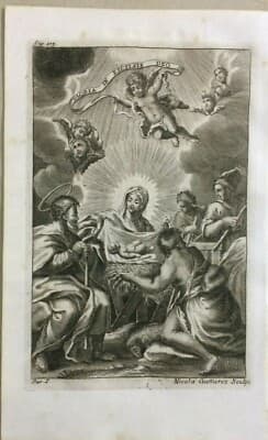 Arte Popolare Devozionale: Natività. Incisore Nicola Guttierez. Antica Incisione All'Acquaforte.