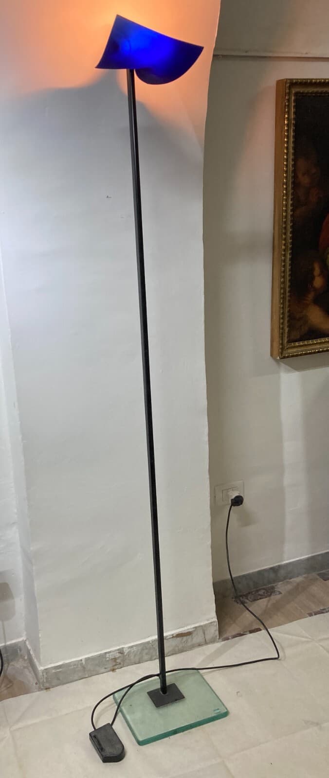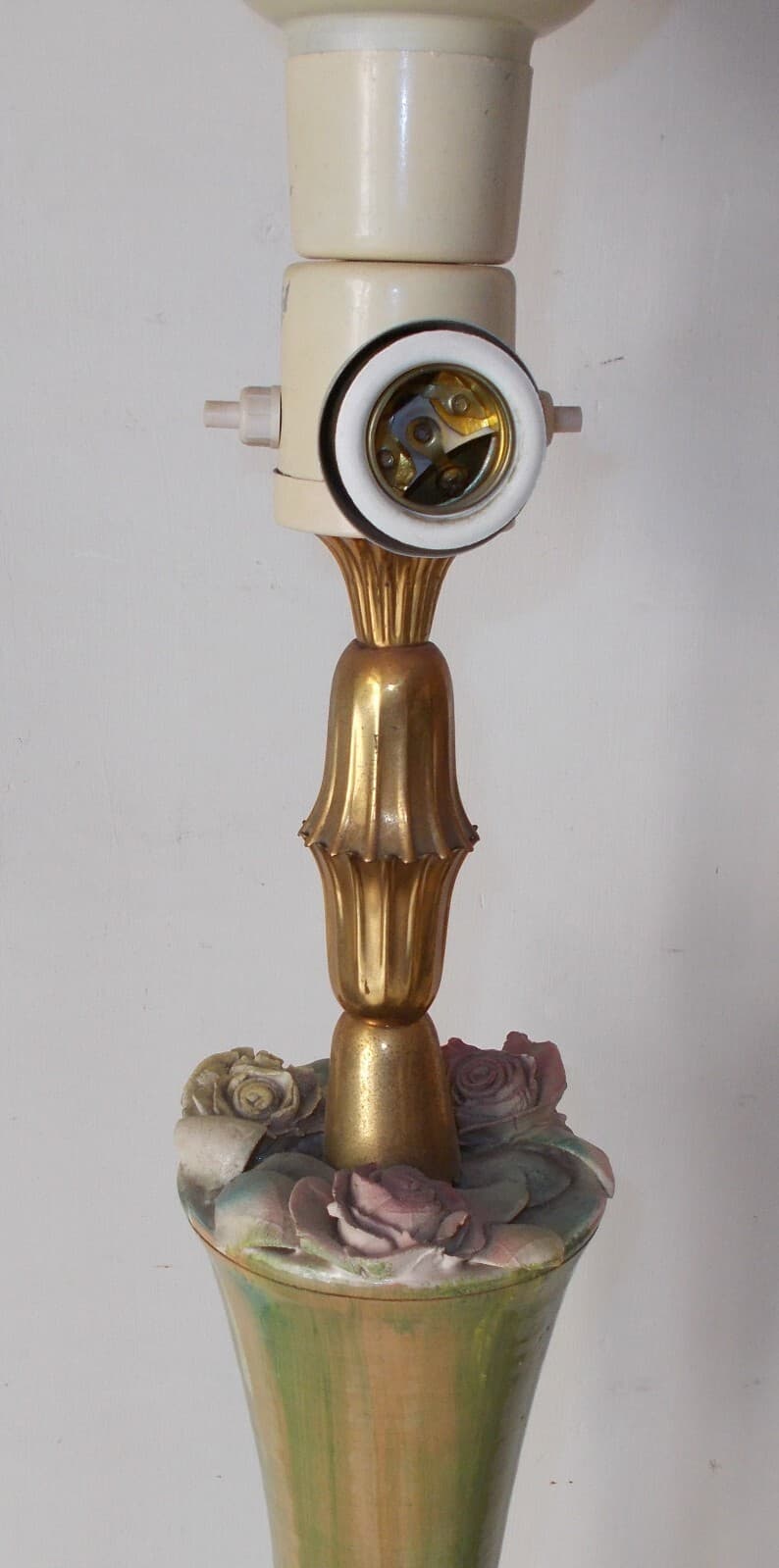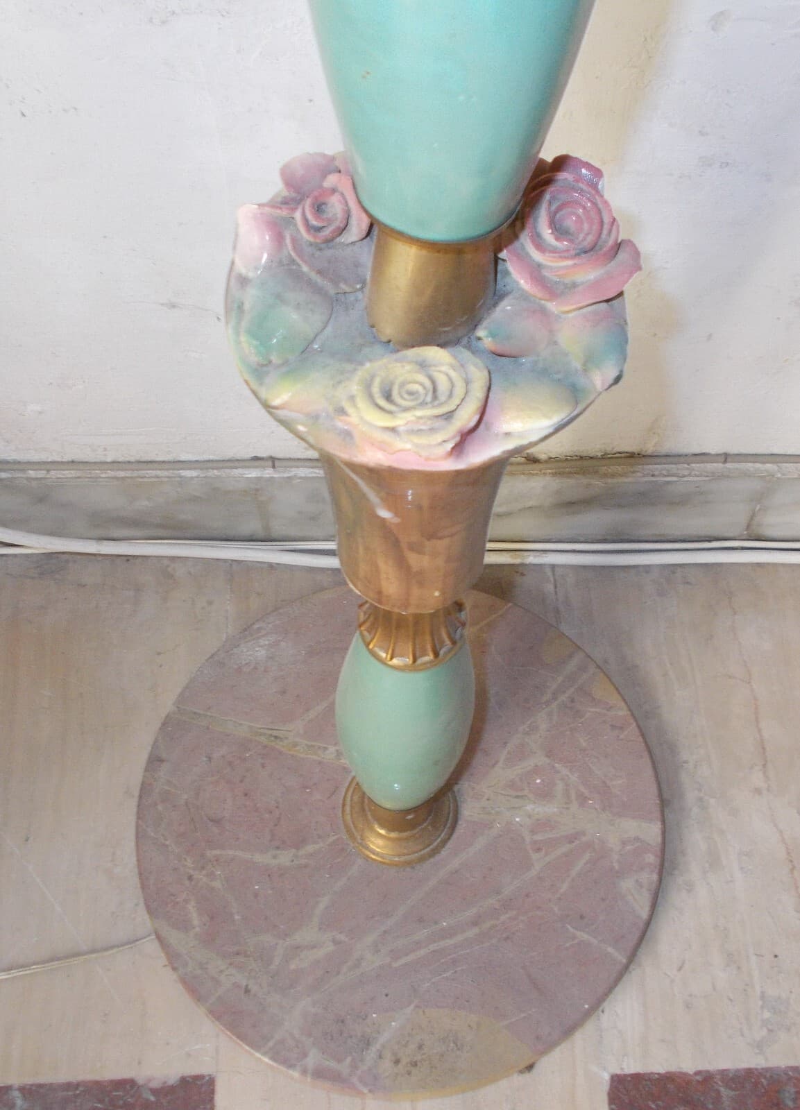 Modernariato, Design: Decorativa Lampada d'Epoca Piantana Anni '50 Con Decori Floreali