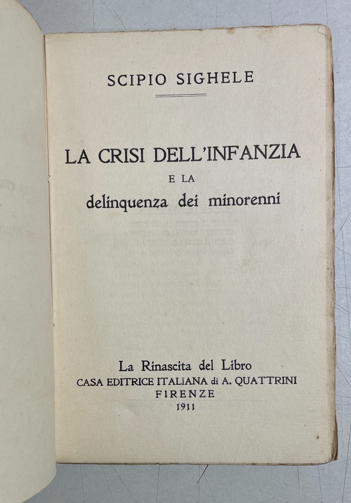 Medicina, Psichiatria, Criminologia E Psicopatologia Infantile: Scipio Sighele, La Crisi Dell'Infanzia
