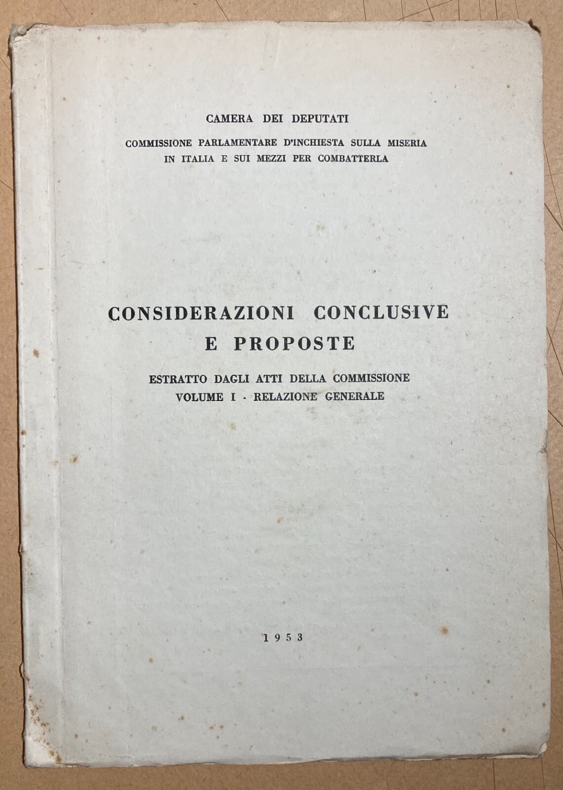 Inchiesta Sulla Miseria In Italia (1953). Relazione Statistica Di Ezio Vigorelli