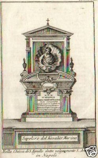 Napoli: Monumento Sepolcrale Del Cavalier Marino Nella Chiesa Di S. Agnello, Incisione Del XVIII Secolo