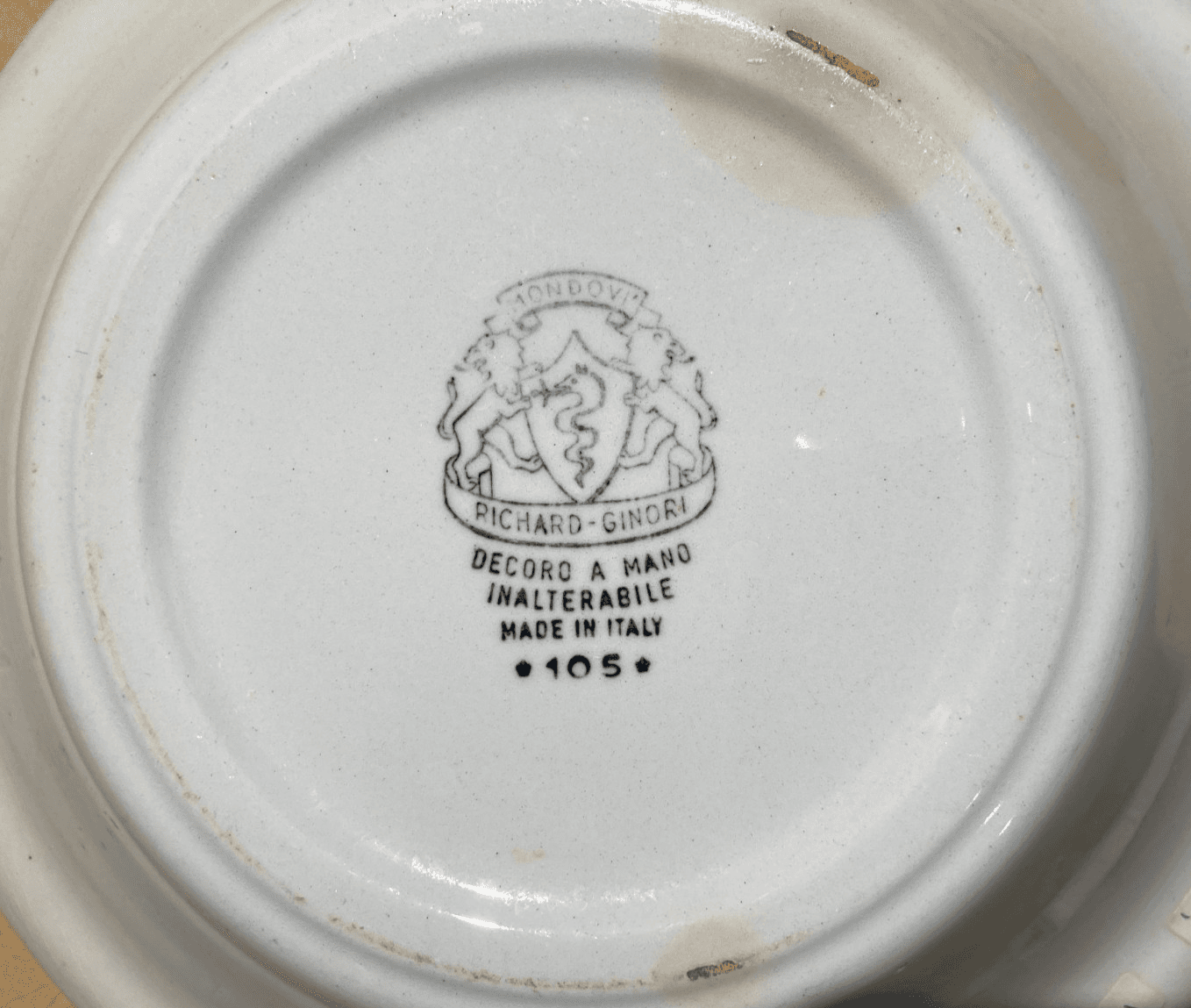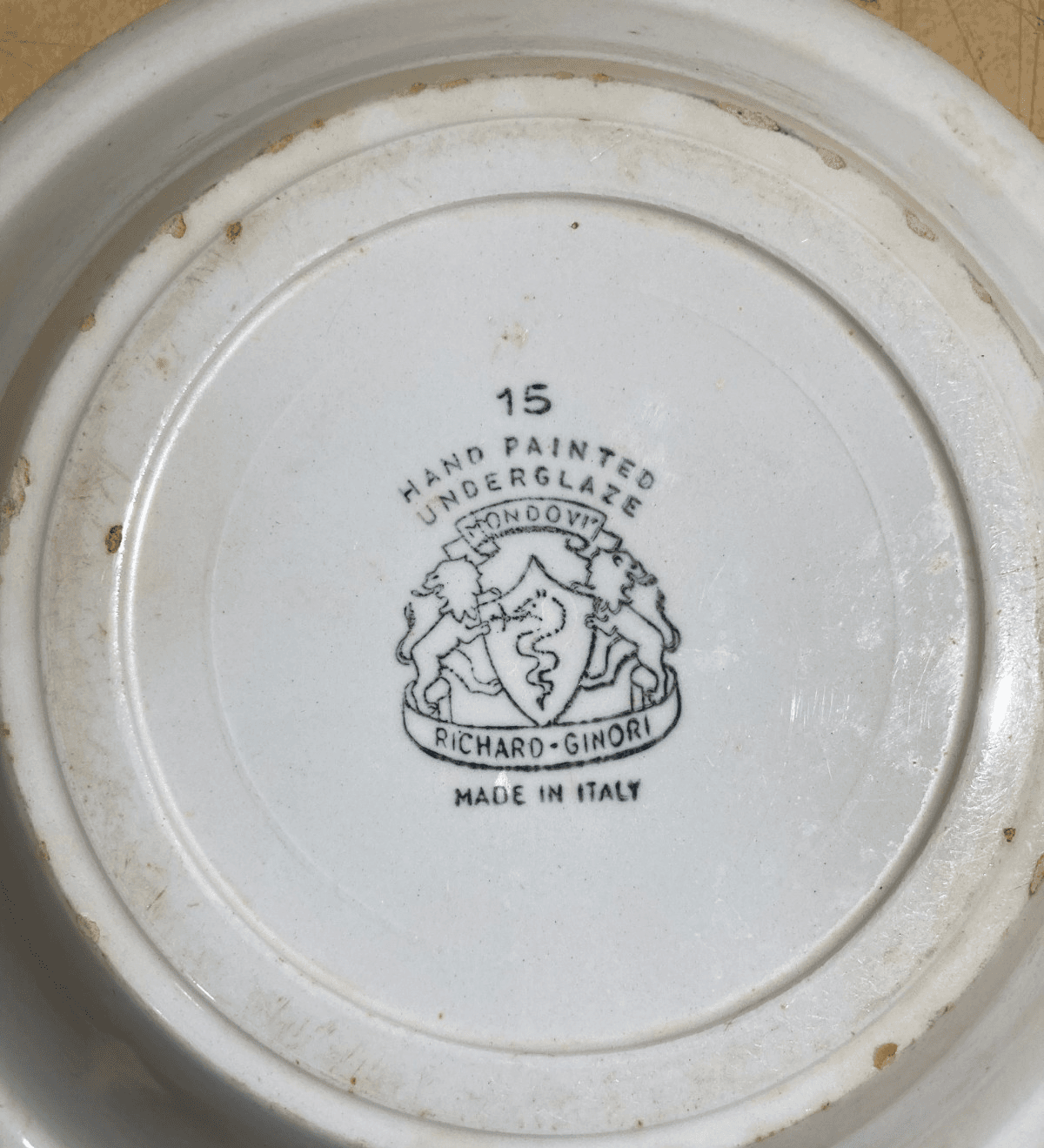 Richard Ginori Mondovì Ceramica Floreale Piatto Fondo Marchio Araldico