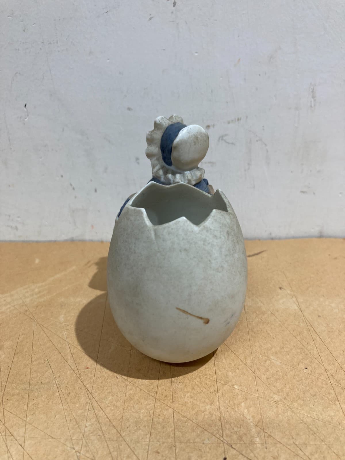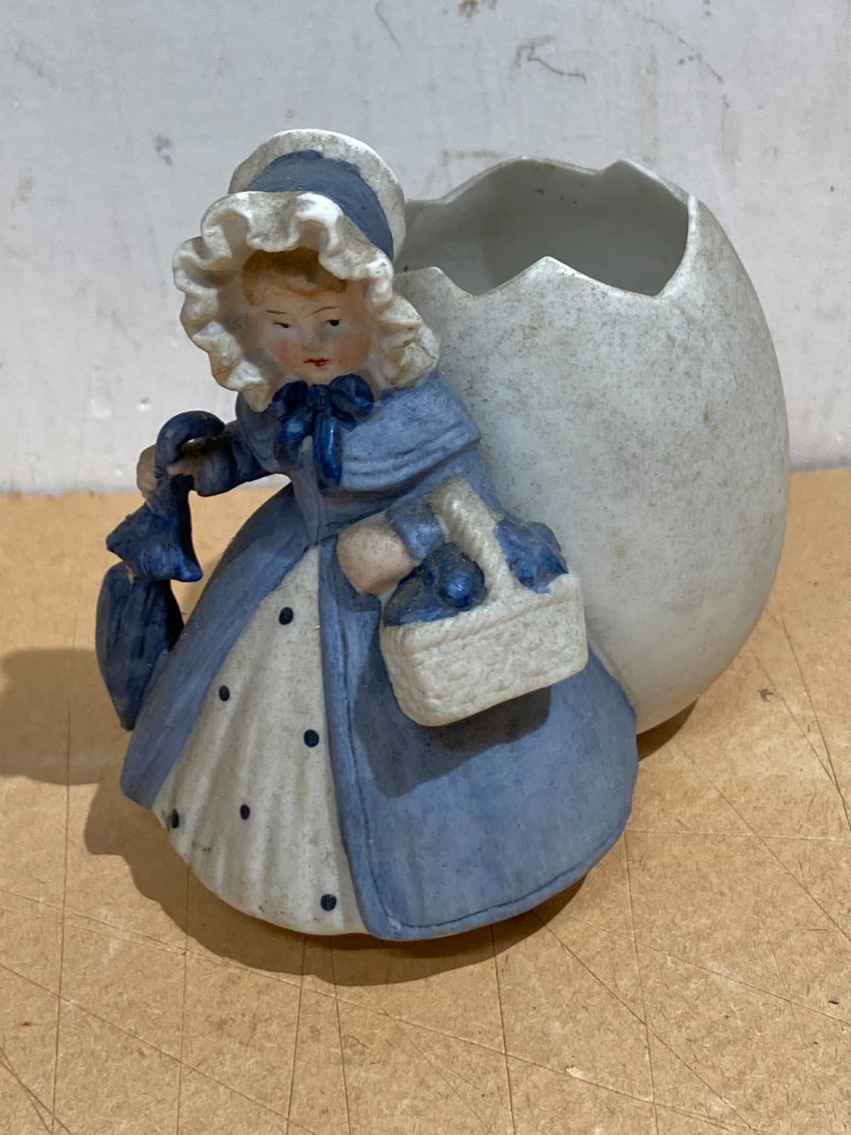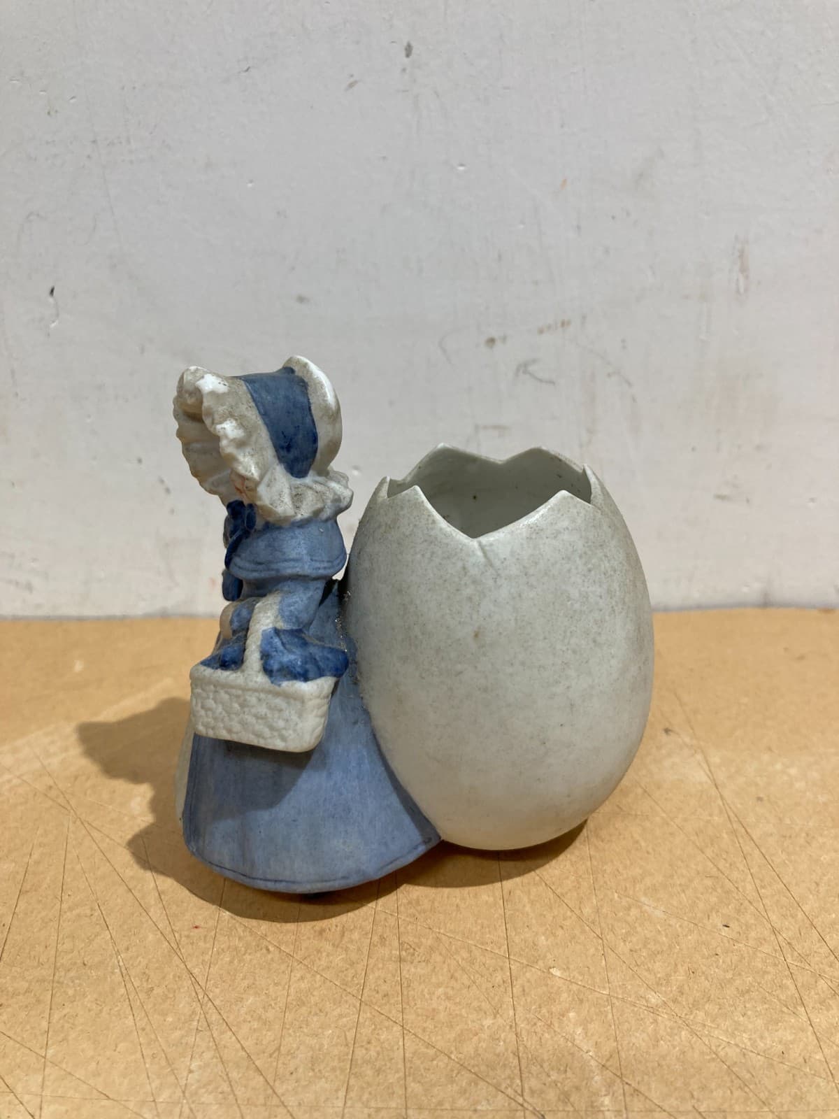 Grazioso Soprammobile Piccola Scultura In Bisquit Figura Femminile Con Uovo