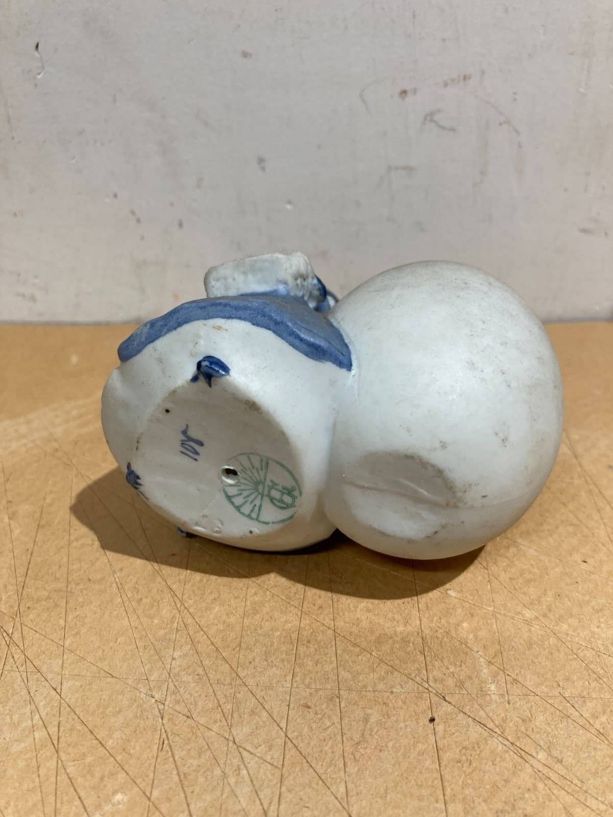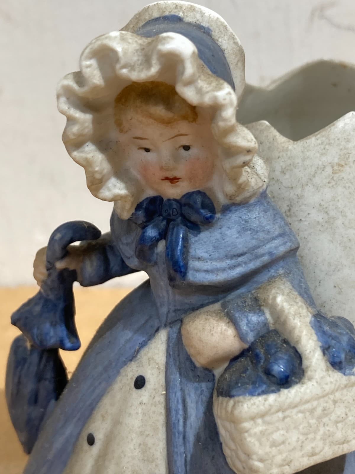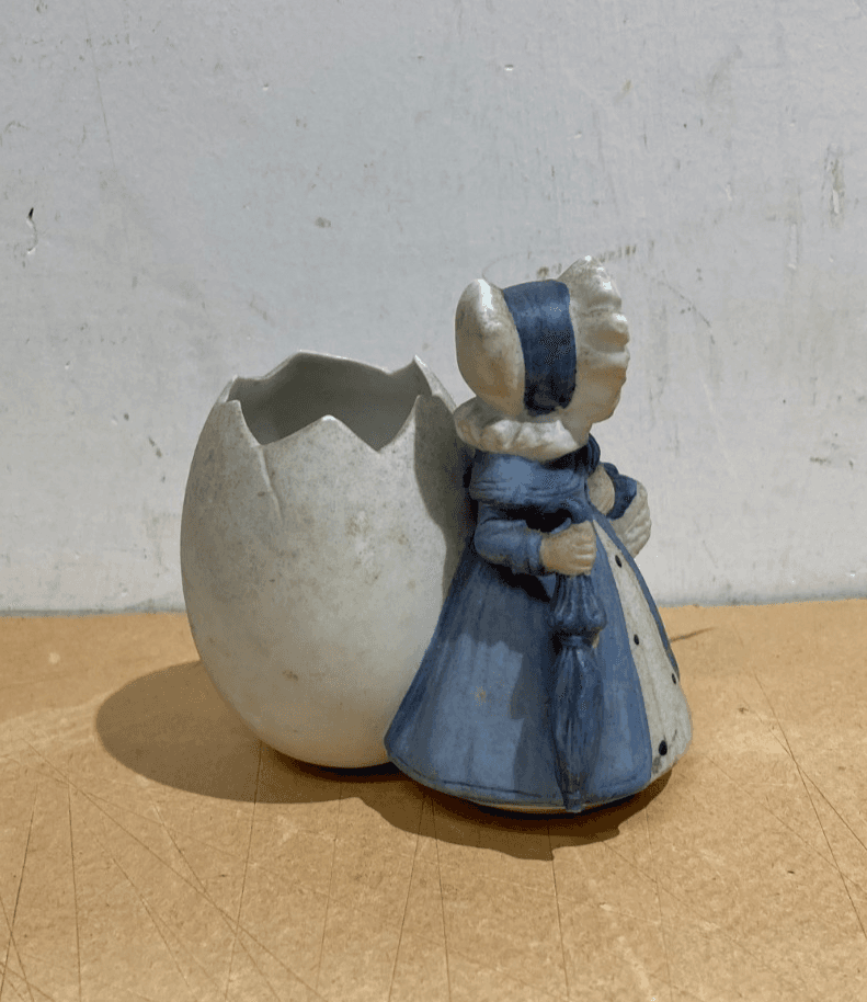 Grazioso Soprammobile Piccola Scultura In Bisquit Figura Femminile Con Uovo