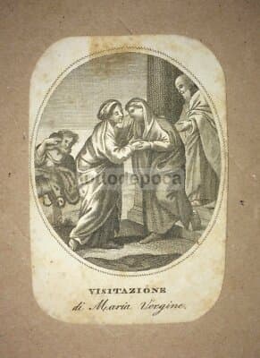 Stampa Popolare Devozionale: Visitazione Di Maria Vergine. Antica Incisione Dell'Ottocento.