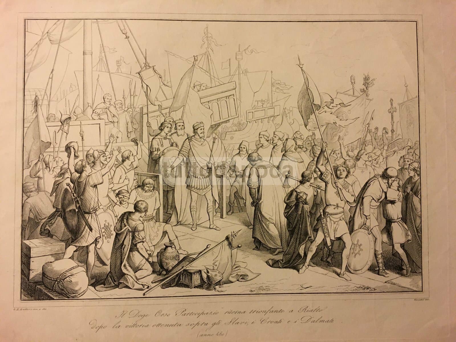 Venezia: Il Doge Orso Partecipazio A Rialto, Artisti Gatteri E Viviani, XIX Secolo