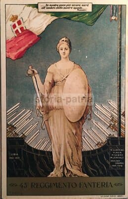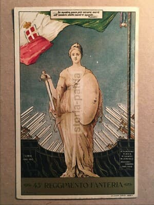 Militaria: Cartolina 43° Reggimento Fanteria Forlì, Allegoria Dell'Italia E Battaglie Storiche, 1932