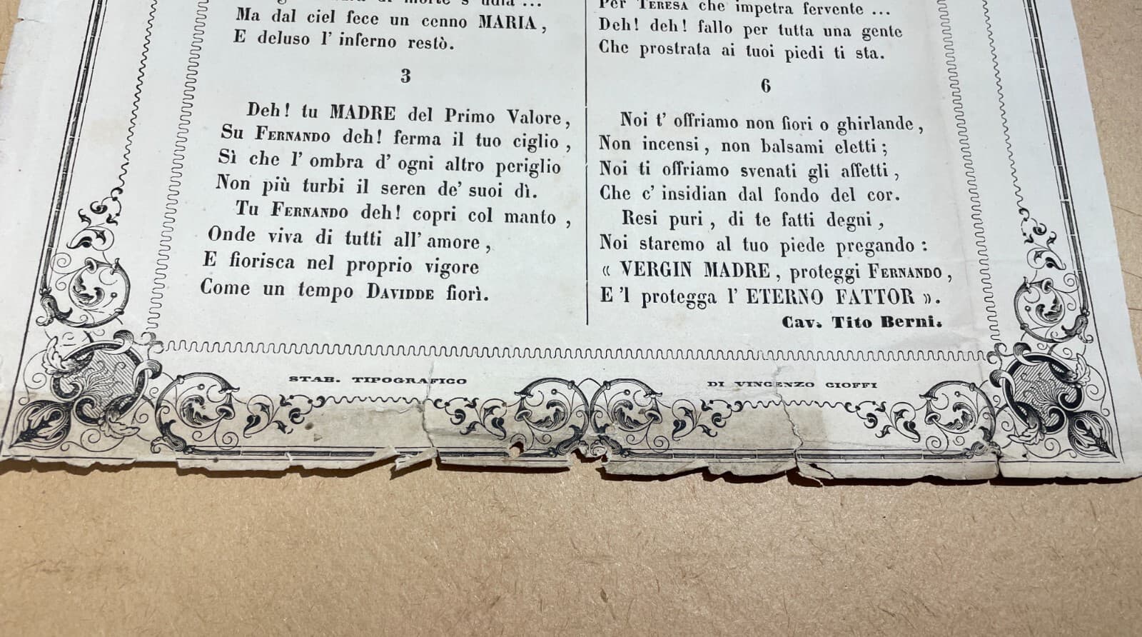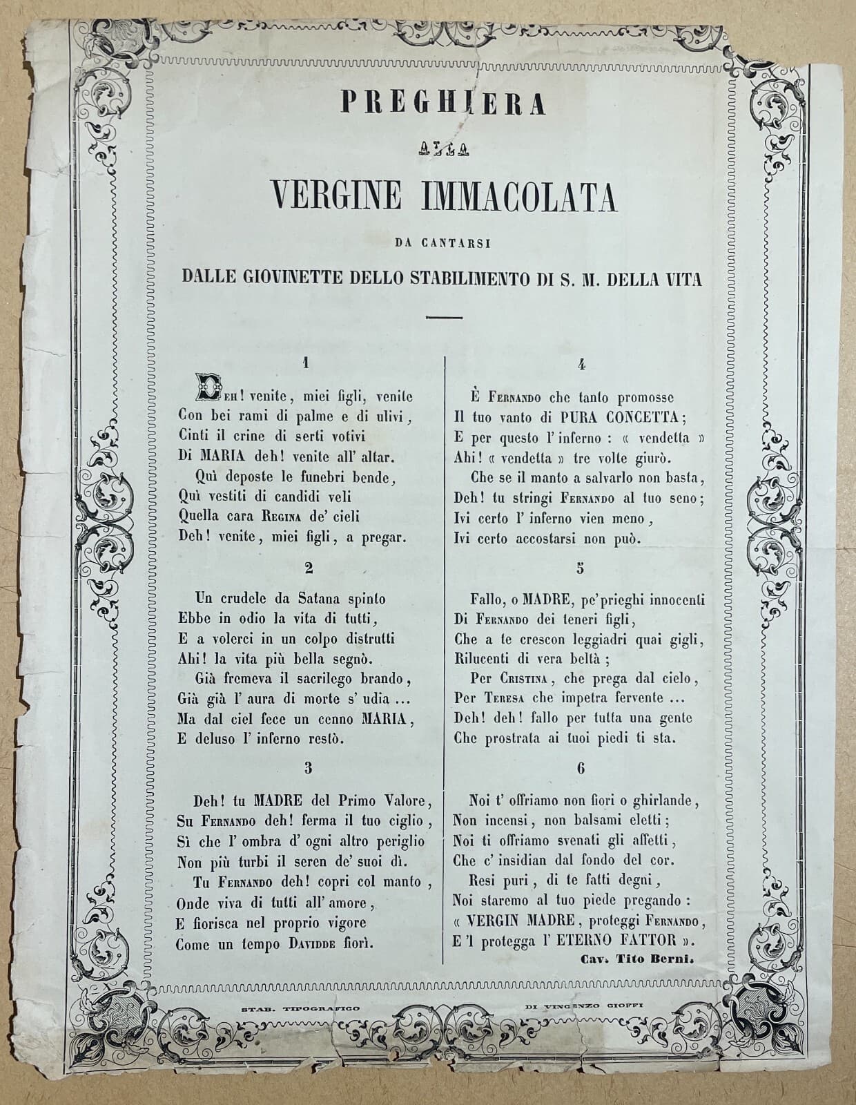 Santa Maria Della Vita Antico Foglio Volante Devozionale Preghiera Berni Cioffi
