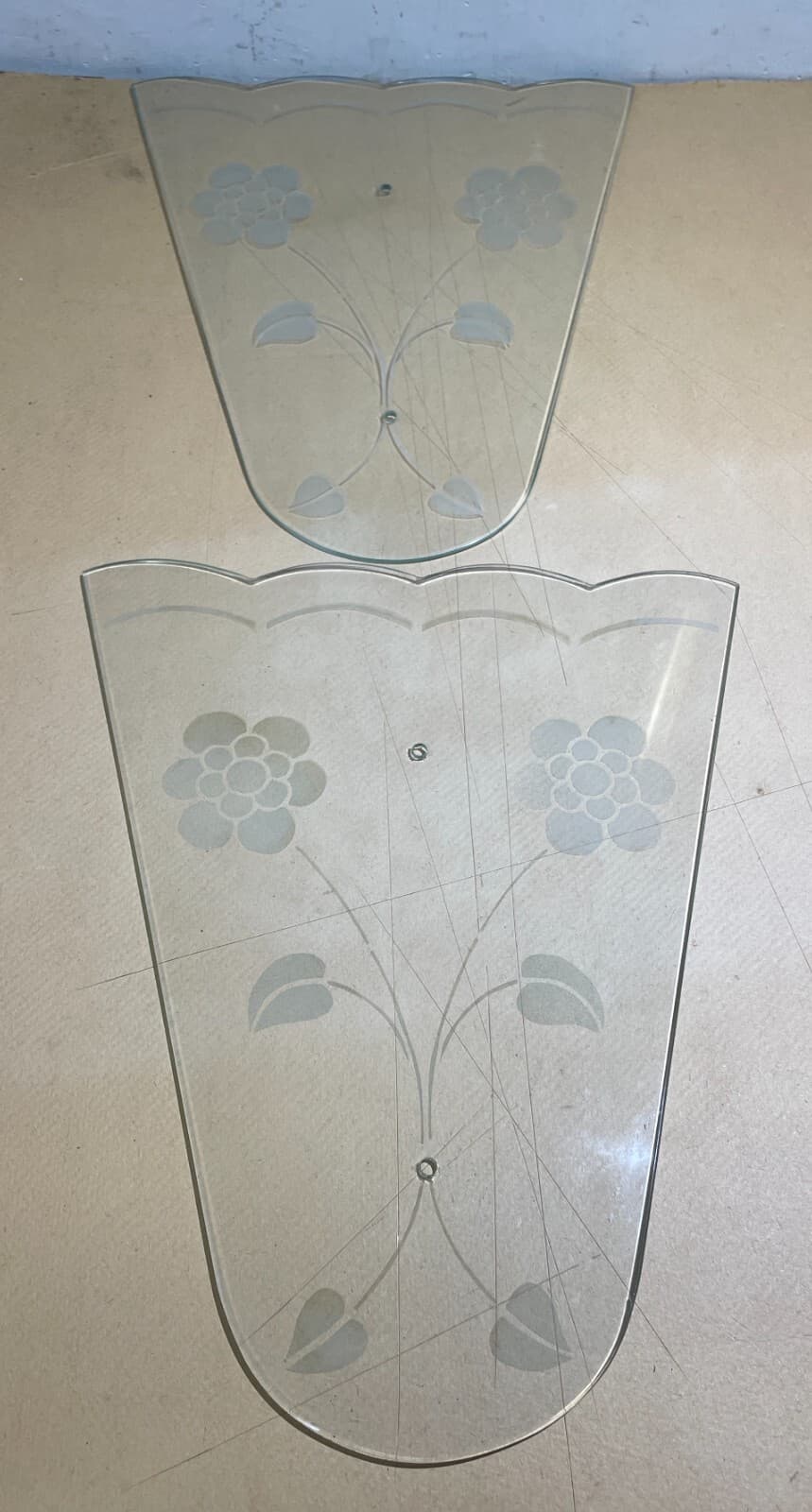 Coppia Di Ventole Per Lampade In Vetro Decorato A Motivi Floreali