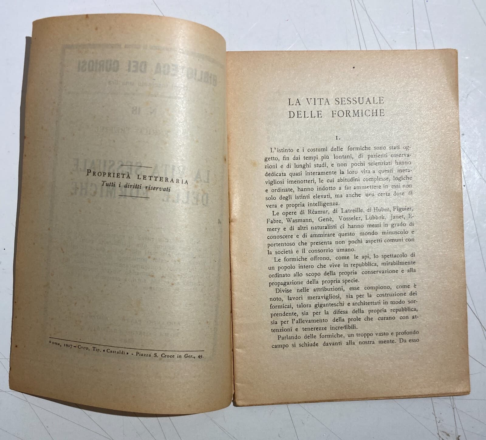 Zoologia: Sessualità Nelle Formiche Trettel Antica Edizione 1927