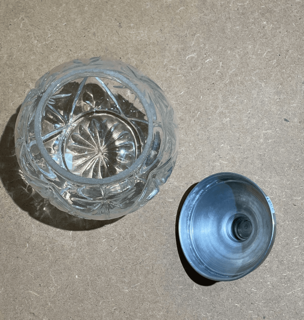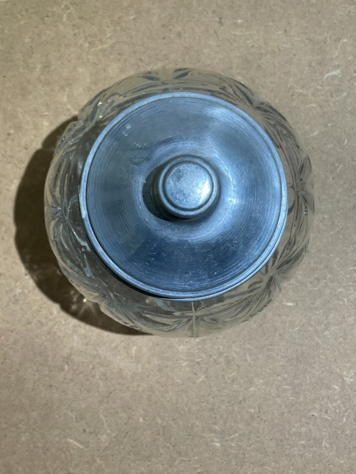 Soprammobile In Vetro Con Coperchio Metallico, Anni '60