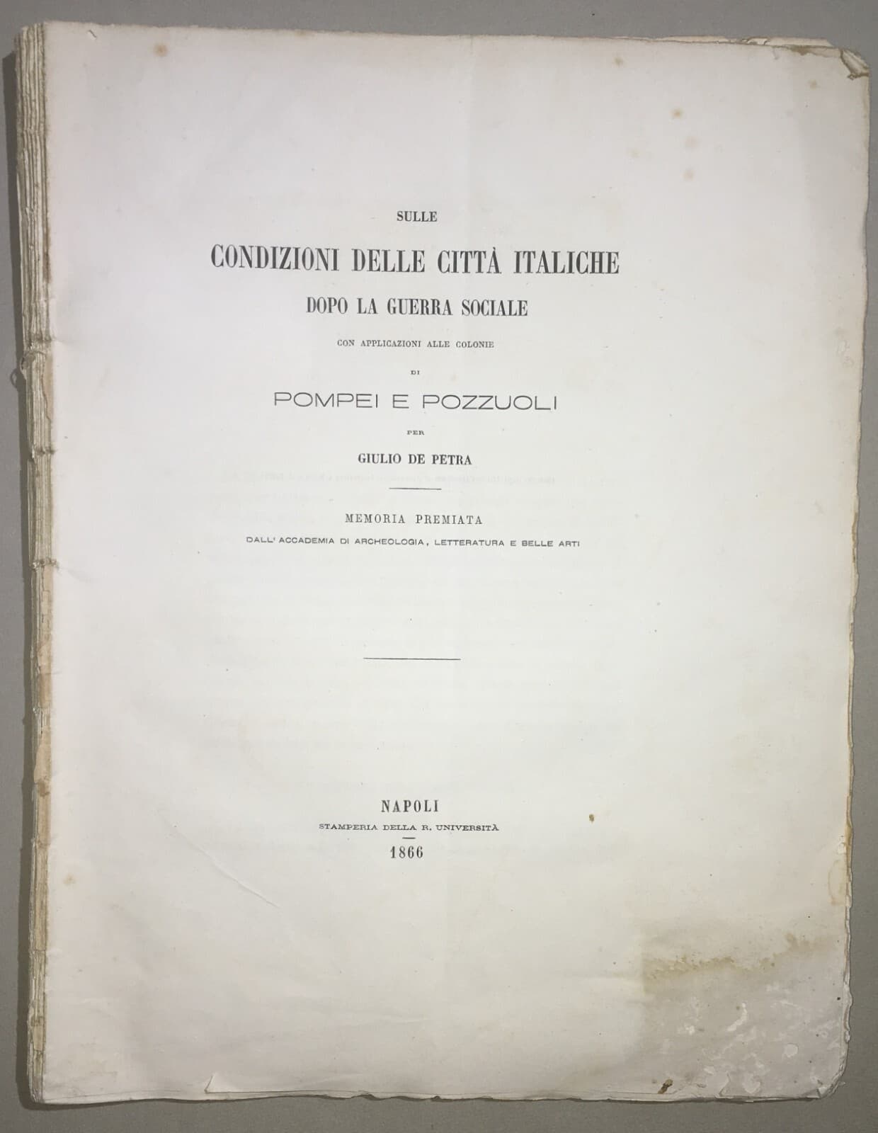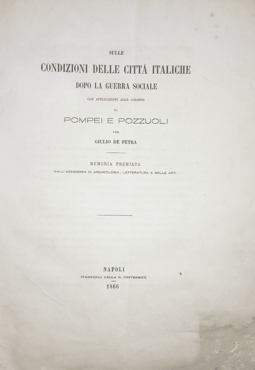 Napoli Guerra Sociale. Città Italiche, Pompei, Pozzuoli. Antica Memoria Di De Petra